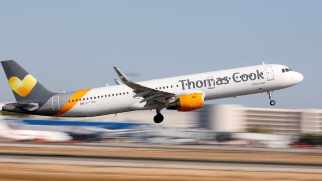 O Όμιλος της Thomas Cook, συμπεριλαμβανομένου του βρετανικού ταξιδιωτικού πρακτορείου και της αεροπορικής εταιρίας, προχώρησε σε παύση λειτουργίας. Όλες οι κρατήσεις, πτήσεις και πακέτα διακοπών έχουν ακυρωθεί. Περίπου 150,000 πελάτες της Thomas Cook βρίσκονται στο εξωτερικό αυτή τη στιγμή.