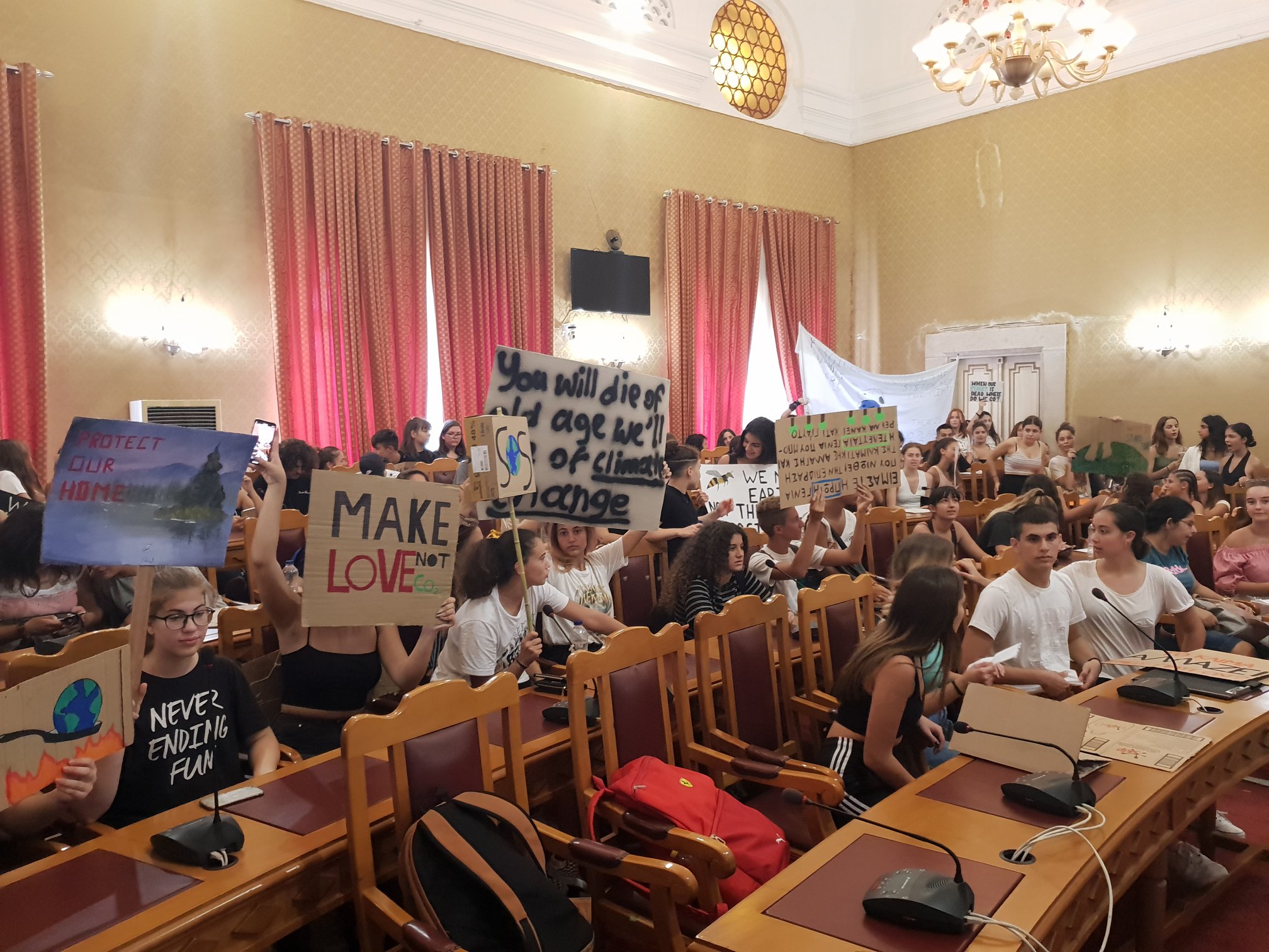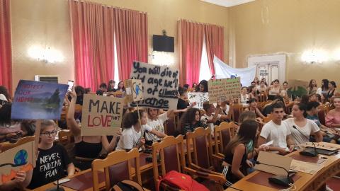 Η πορεία των μαθητών στους δρόμους της πόλης που κατέληξε στην Περιφέρεια, πραγματοποιήθηκε στο πλαίσιο της παγκόσμιας εκστρατείας #fridaysforfuture.