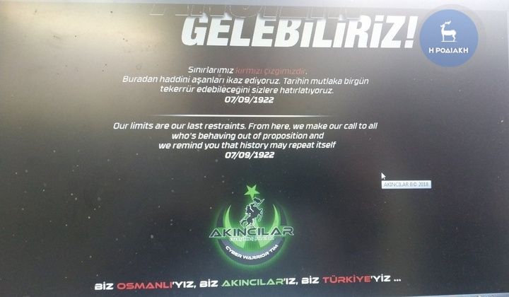 Οι Τούρκοι, όπως και σε άλλες περιπτώσεις πριν από μερικές μέρες, εξαπέλυσαν κυβερνοεπίθεση.