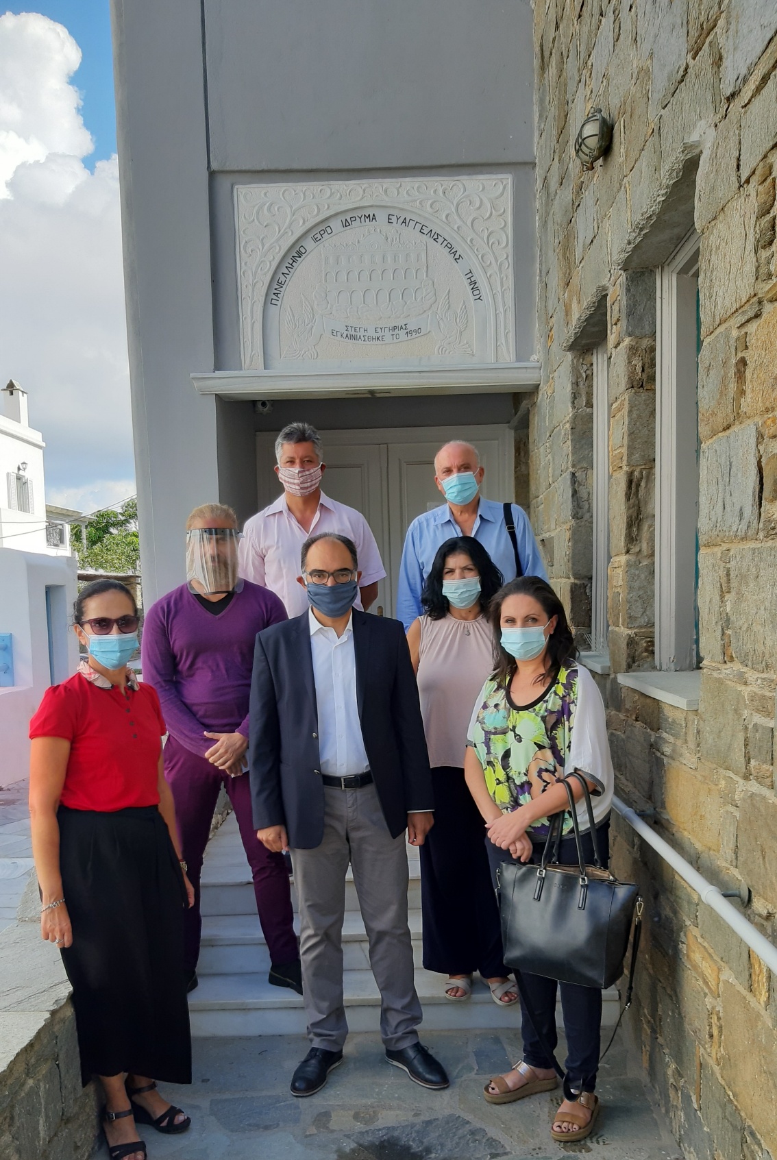 Επίσκεψη εργασίας στην Τήνο, στις 12 Οκτωβρίου 2020, πραγματοποίησε ο Αντιπεριφερειάρχης Υγείας, Πρόνοιας και Κοινωνικής Μέριμνας Κυκλάδων Κώστας Μπιζάς όπου μαζί με την Πρόεδρο του Περιφερειακού Συμβουλίου και Έπαρχο Τήνου κα Αναστασία Δεληγιάννη, επισκέφτηκαν :