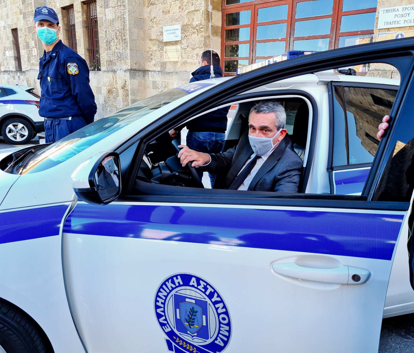 Κατά την τελετή παράδοσης, που πραγματοποιήθηκε την Πέμπτη 24 Δεκεμβρίου, στον εξωτερικό χώρο του κτηρίου της Α’ Αστυνομικής Διεύθυνσης Δωδεκανήσου, ο Περιφερειάρχης Γιώργος Χατζημάρκος παρέδωσε στον Αστυνομικό Διευθυντή, Μιχάλη Καληωράκη δέκα (10) νέα οχήματα της Ελληνικής Αστυνομίας για τις ανάγκες της Α’ Δ/σης Αστυνομίας Δωδεκανήσου, παρουσία του Δημάρχου Ρόδου Αντώνη Καμπουράκη και του Χωρικού Αντιπεριφερειάρχη Δωδεκανήσου, Χρήστου Ευστρατίου ![]()