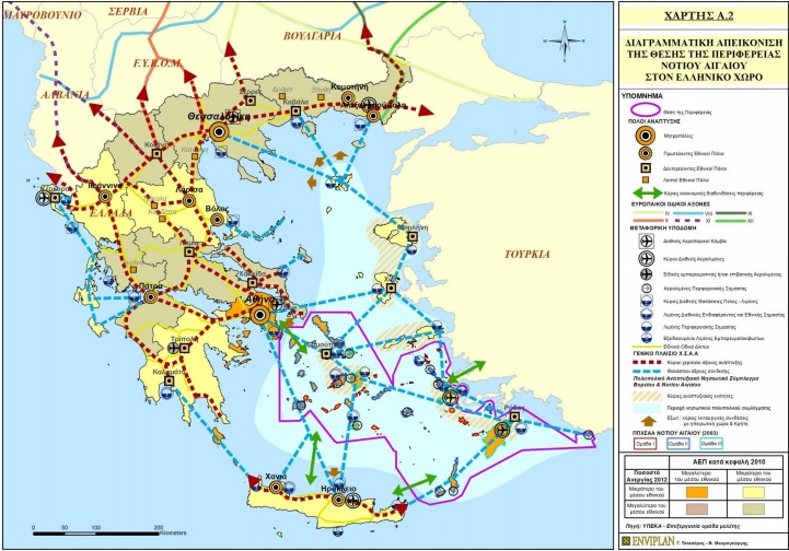 Στρατηγικές κατευθύνσεις: Αναδιάρθρωση, ενίσχυση και διεύρυνση του φάσματος των οικονομικών δραστηριοτήτων. Έμφαση στην προώθηση της έρευνας και καινοτομίας. Εμπλουτισμός τουριστικού προϊόντος & ειδικών υποδομών αιχμής. Παροχή ελκυστικού περιβάλλοντος διαβίωσης πολλαπλών επιλογών. Παρεμβάσεις για μείωση χρονοαποστάσεων ενδοπεριφερειακά και διαπεριφερειακά. Ανάπτυξη κέντρων διακρατικών συνεργασιών. Εξασφάλιση ισόρροπης σχέσης μεταξύ αστικού, περιαστικού και αγροτικού χώρου. Αντιμετώπιση των ενδονησιωτικών ανισοτήτων. Ενίσχυση των τάσεων δικτύωσης μεταξύ οικιστικών κέντρων και ανάδειξη πόλων ανάπτυξης. Ανάπτυξη της κοινωνίας της γνώσης και ενδυνάμωση των εξωστρεφών συνεργασιών. Ενίσχυση της επιχειρηματικότητας, καλλιέργεια της καινοτομίας, προσέλκυση επενδύσεων υψηλής προστιθέμενης αξίας και δημιουργία νέων θέσεων εργασίας. Διατήρηση, ενίσχυση και ανάδειξη της οικιστικής και παραγωγικής πολυμορφίας, καθώς και της φυσικής ποικιλότητας. Αποκατάσταση ιστορικής σημασίας.Ανανέωση και εμπλουτισμός της εδραιωμένης ταυτότητας.