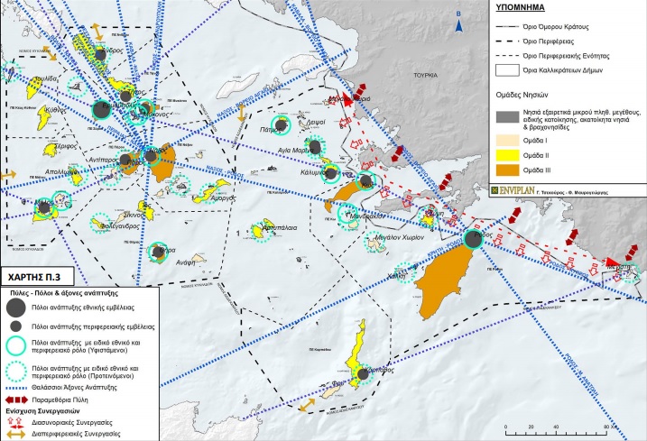 Επίπεδο Καλλικράτειων Δήμων Ομάδας ΙΙΙ: Δήμοι: Σύρου – Ερμούπολης, Θήρας, Μυκόνου, Κω, Νάξου & Μικρών Κυκλάδων, Πάρου, Ρόδου. Κεντρικός στόχος: η συστηματική διαφύλαξη και ενίσχυση του ρόλου (αύξηση ανταγωνιστικότητας) των Δήμων / Οικιστικών πόλων σε εθνικό, ευρωπαϊκό και διεθνές επίπεδο, με την ανάδειξή τους σε κόμβους μεταφορών - επικοινωνιών, πολιτισμού – τουρισμού, έρευνας – καινοτομίας – τεχνολογικής ανάπτυξης / εφαρμογών.