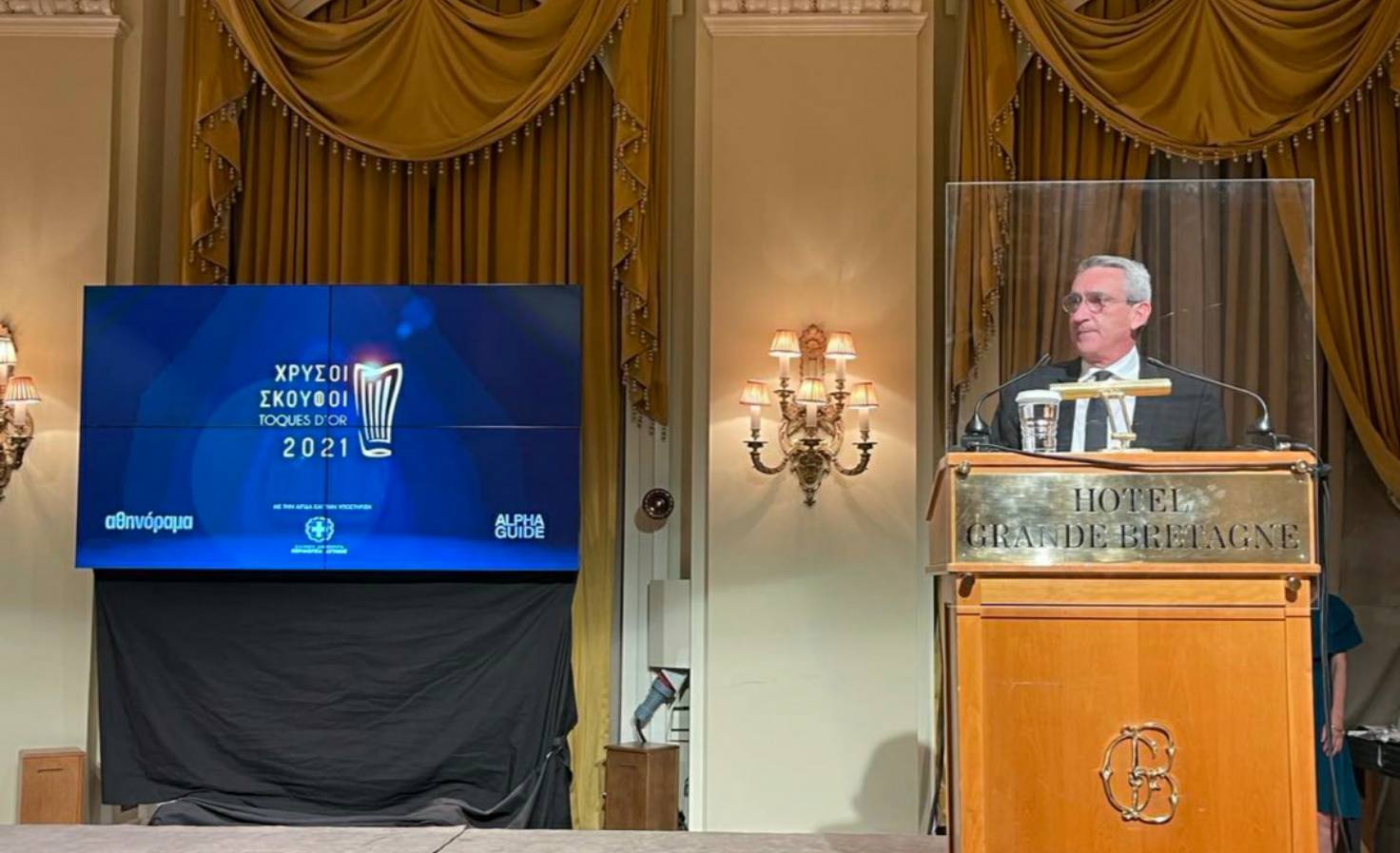 «Μεγάλη η χαρά και η περηφάνια να συμμετέχεις στην τελετή βράβευσης των Χρυσών Σκούφων 2021 και 17 βραβεία να πηγαίνουν σε εστιατόρια των Κυκλάδων και της Δωδεκανήσου. Santoro, Bill & Coo, Alali, Lauda, Cuvee, Selene, Lycabetttus, Hλιοβασίλεμα, Grandma's, Petra, Beef Bar, Kensho, Mαραθιά, Mikrasia Santorini, Mikrasia Mykonos, Naos και Jackie O Beach, είναι τα εστιατόρια νησιών μας που βραβεύτηκαν.