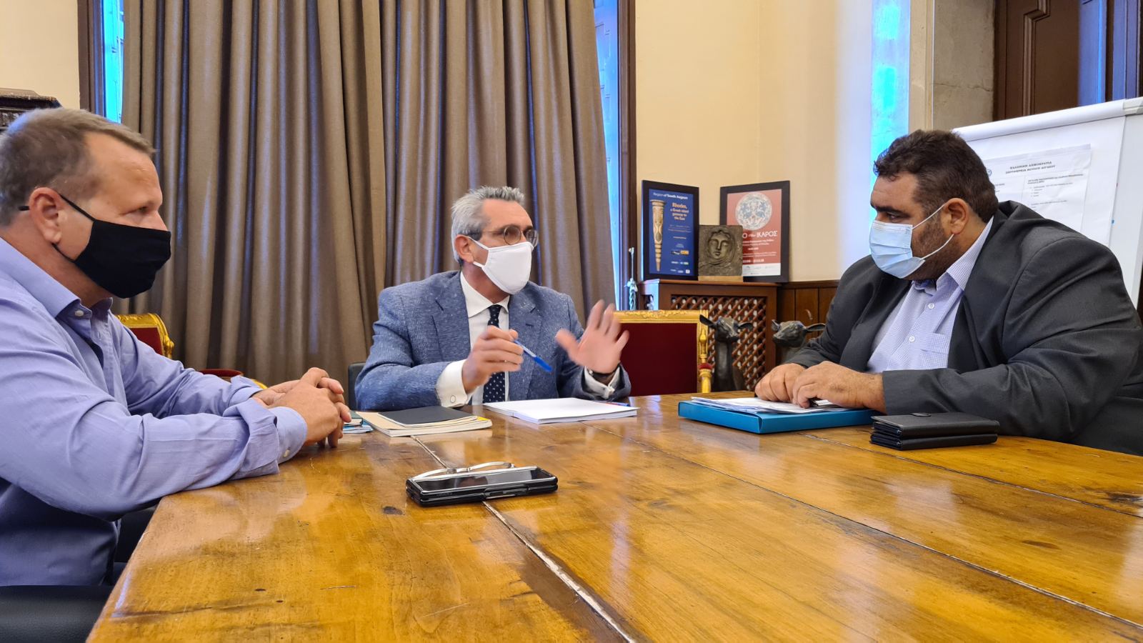 Συνάντηση εργασίας είχε ο Περιφερειάρχης Νοτίου Αιγαίου, κ. Γιώργος Χατζημάρκος, με τον κ. Μιχάλη Λουλού, τον νέο Πρόεδρο του Περιφερειακού Φυτώριου, την εταιρεία που επικεντρώνει τη δράση της στην παραγωγή πολυετών και δασικών φυτών, στην οποία συμμετείχε ο Χωρικός Αντιπεριφερειάρχης Δωδεκανήσου, Χρήστος Ευστρατίου.