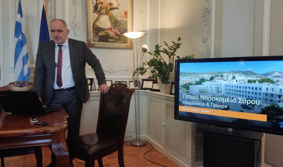 To πρόγραμμα ψηφιοποίησης του Γενικού Νοσοκομείου Σύρου ολοκληρώθηκε και παρουσιάστηκε πριν από λίγο στην έδρα της Περιφέρειας Ν. Αιγαίου, ως το πρώτο σπουδαίο αποτέλεσμα που παρήγαγε και απέδωσε στην κοινωνία, το Διεθνές Κέντρο Θαλάσσιας Τεχνολογίας και Καινοτομίας που λειτουργεί στην πρωτεύουσα των Κυκλάδων.