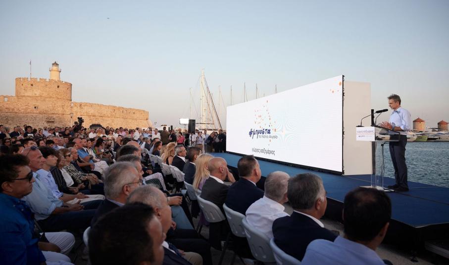 Ο κ. Μητσοτάκης, προλογίζοντας τον κ. Χατζημάρκο, ευχαρίστησε τους κατοίκους του νησιού διότι «μετέτρεψαν μια περιβαλλοντική περιπέτεια, σε μια μεγάλη ευκαιρία να αναβαθμίσει η Ρόδος ακόμη περισσότερο τη φήμη της ως ενός εξαιρετικά φιλόξενου προορισμού». «Καταφέρατε, καταφέραμε, όχι μόνο να σώσουμε την τουριστική σαιζόν, αλλά και να έχουμε στοιχεία που μας κάνουν να πιστεύουμε ότι θα είναι καλύτερη από την περυσινή» ανέφερε και έδωσε την υπόσχεση πως «όλα όσα έχουμε πει για να γιατρέψει η Ρόδος τις πληγές της από την φωτιά του Ιουλίου θα γίνουν πράξη».