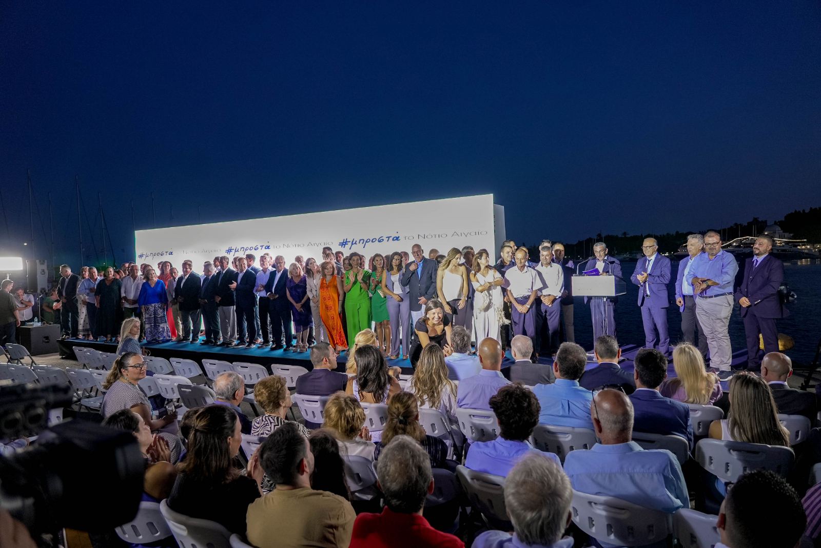 Ακολούθησε η παρουσίαση των 117 υποψηφίων περιφερειακών συμβούλων που συνθέτουν την “dream team του Νοτίου Αιγαίου”, με τον κ Χατζημάρκο να περιγράφει “μια ισχυρή ομάδα που συνθέτει την εμπειρία δοκιμασμένων συνεργατών με την ορμή της ανανέωσης. Είναι ομάδα νίκης, είναι ομάδα προοπτικής, είναι ομάδα που θέλει, ξέρει και μπορεί να πάει το Νότιο Αιγαίο ακόμη πιο μπροστά, ακόμη πιο ψηλά”.