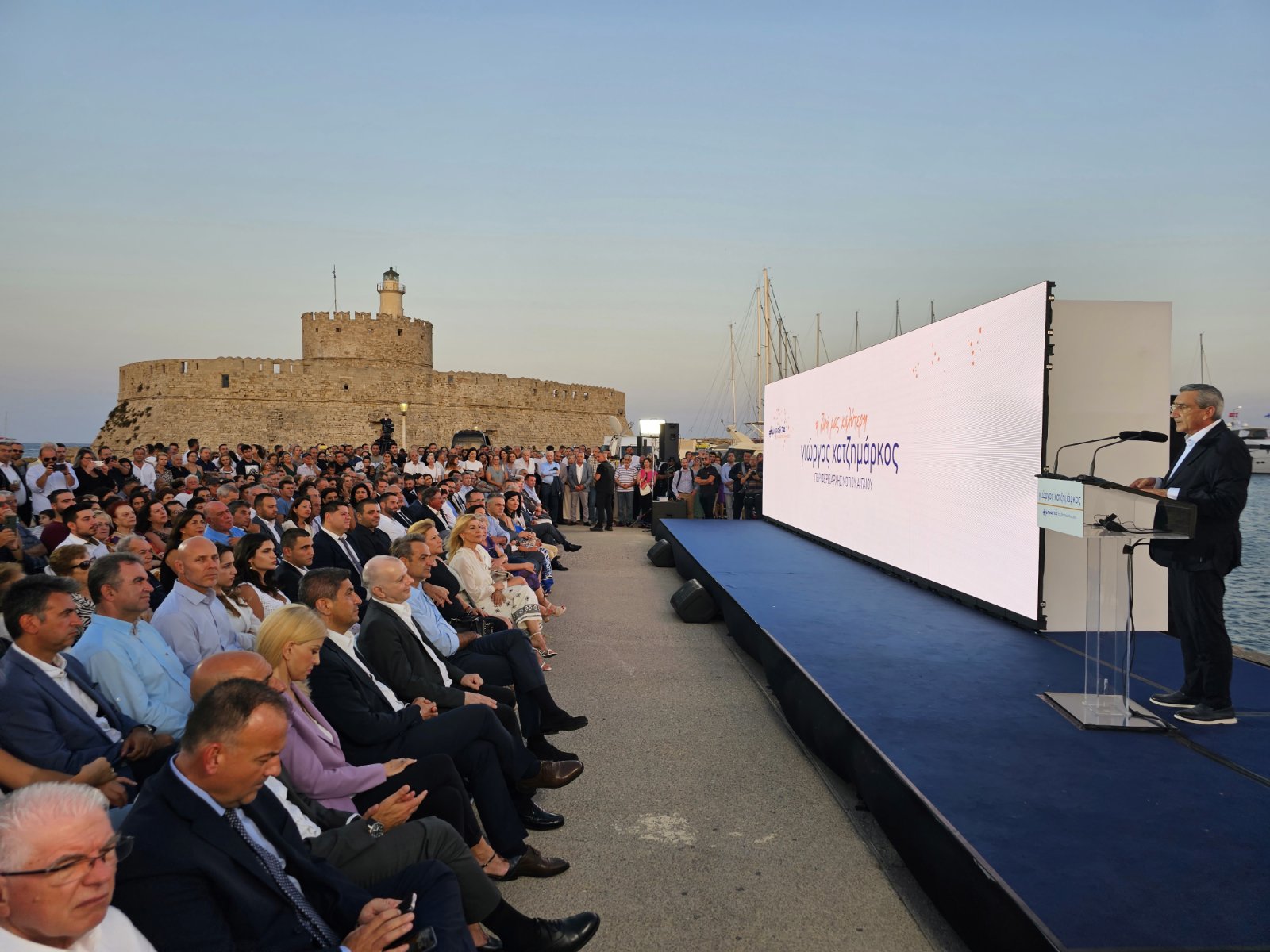 Ολόκληρος ο χαιρετισμός του Πρωθυπουργού και Προέδρου της Νέας Δημοκρατίας Κυριάκου Μητσοτάκη στην εκδήλωση για την υποψηφιότητα του Γιώργου Χατζημάρκου για τη θέση του Περιφερειάρχη Νοτίου Αιγαίου.