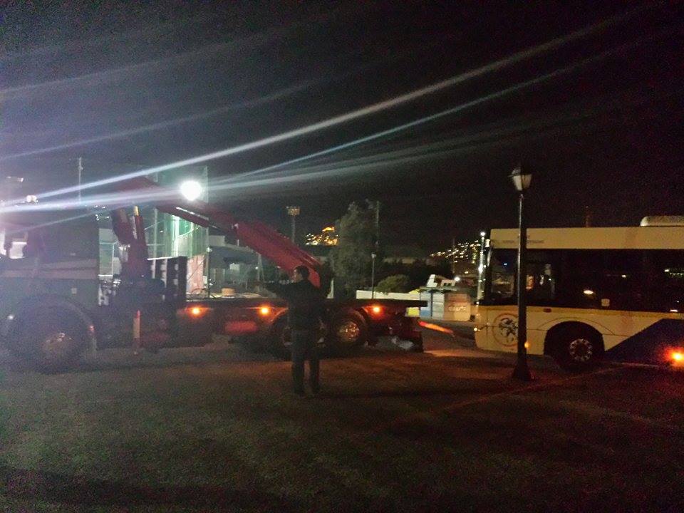 Σε χώρο του Δήμου Σύρου - Ερμούπολης ρυμουλκήθηκε ένα εκ των mini bus σήμερα μετά τις εννέα το βράδυ με ειδικό γερανοφόρο όχημα μετά από βλάβη που υπέστη, η οποία κατέστησε αδύνατη αρχικά τη μετακίνησή του από την κάθοδο του Αγίου Νικολάου στην Ερμούπολη, όπου και ακινητοποιήθηκε το μεσημέρι, παραμένοντας αρκετές ώρες στο ίδιο σημείο.