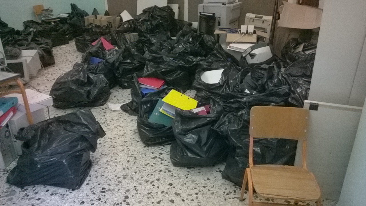 Σε μαύρες σακούλες σκουπιδιών, έτοιμα προς απόρριψη, βρέθηκαν τα “χαμένα” βιβλία και τα στοιχεία του ΚΕΚ Φερεκύδης, καθώς επίσης και αρκετό πολύτιμο υλικό (ηλεκτρονικοί υπολογιστές, φάκελοι ευρωπαϊκών προγραμμάτων κλπ), που προδίδει τη δράση του ΚΕΚ, τη λειτουργία του και την αντιμετώπισή του από τους τότε αρμοδίους του πρώην Δήμου Άνω Σύρου και του Δήμου Σύρου - Ερμούπολης. Το υλικό αυτό, πέρα από την πρόχειρη τοποθέτησή του σε μαύρες σκουπιδοσακούλες, υπήρξε εκτεθειμένο στο χρόνο και κινδύνευσε με καταστροφή, ενώ άγνωστος μέχρι σήμερα παραμένει ο λόγος που δεν παραδόθηκε το υλικό αυτό στον εκκαθαριστή αλλά ούτε και στις Εισαγγελικές και Ανακριτικές Αρχές, οι οποίες διερευνούν την υπόθεση αυτή, επί χρόνια.
