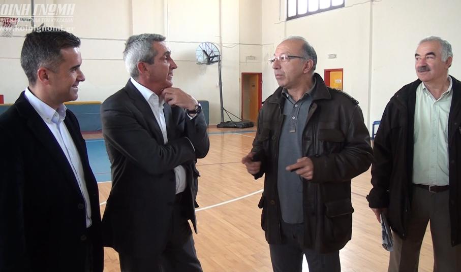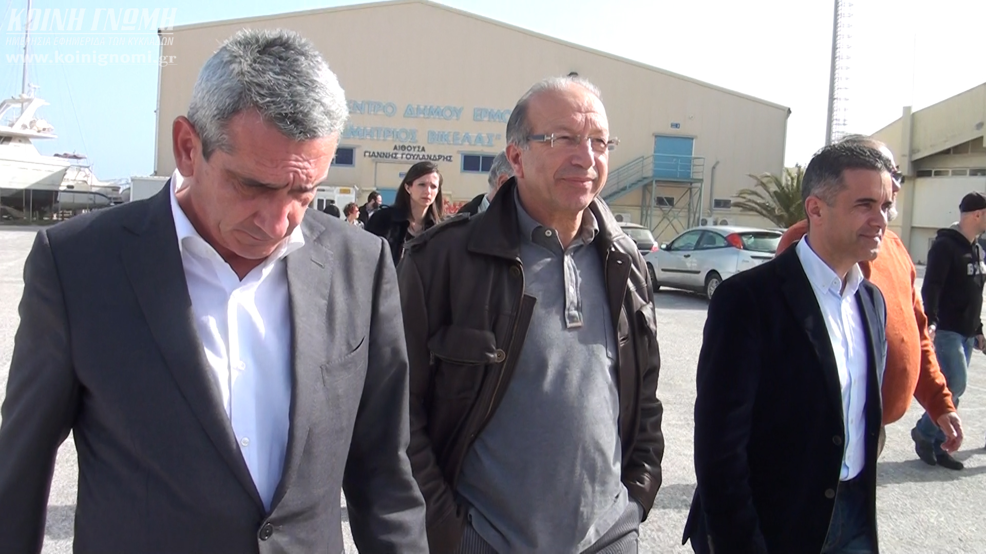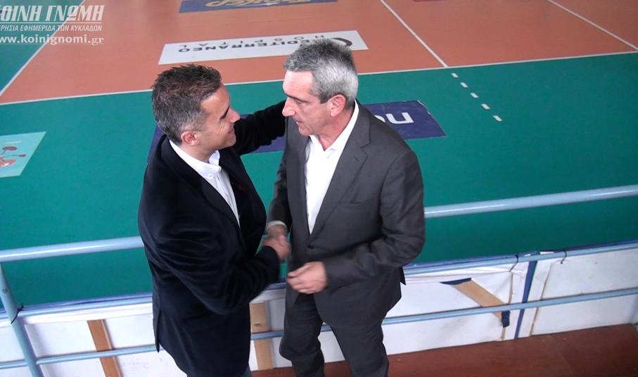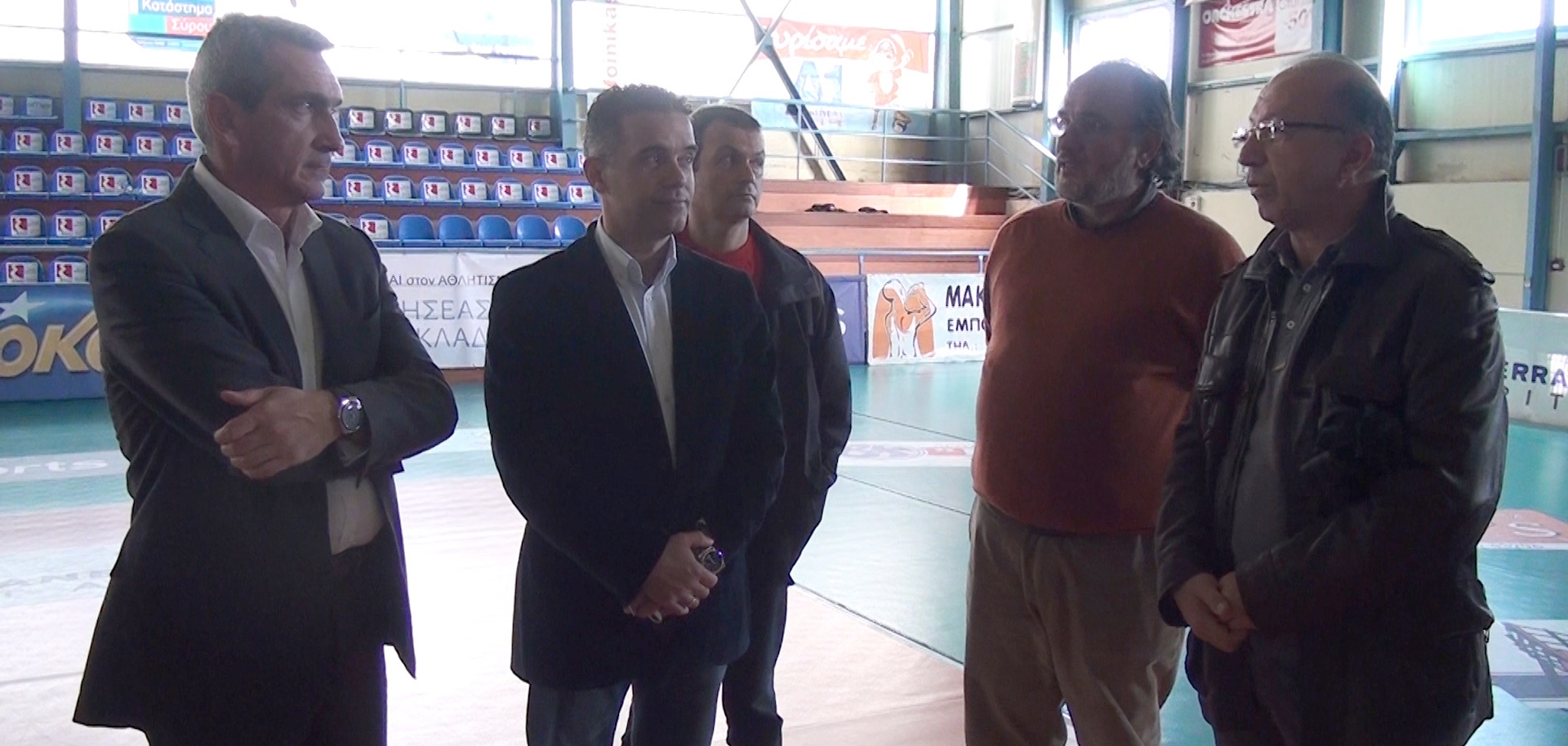 Συνάντηση στο Αθλητικό Κέντρο "Δημήτριος Βικέλας" στη Σύρο σε Α' και Β' Αίθουσα πραγματοποίησαν το μεσημέρι της Πέμπτης ο Περιφερειάρχης Νοτίου Αιγαίου Γιώργος Χατζημάρκος, ο Αντιπεριφερειάρχης Κυκλάδων Γιώργος Λεονταρίτης και ο Δήμαρχος Σύρου - Ερμούπολης Γιώργος Μαραγκός.