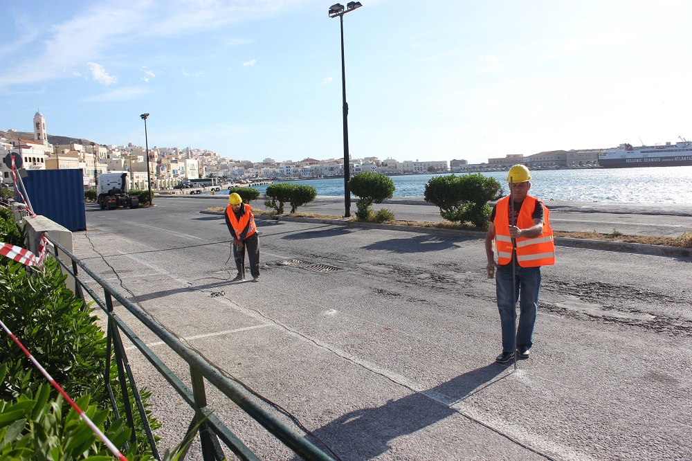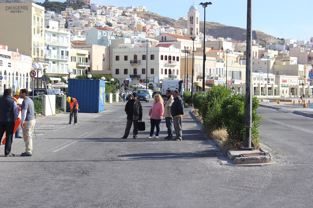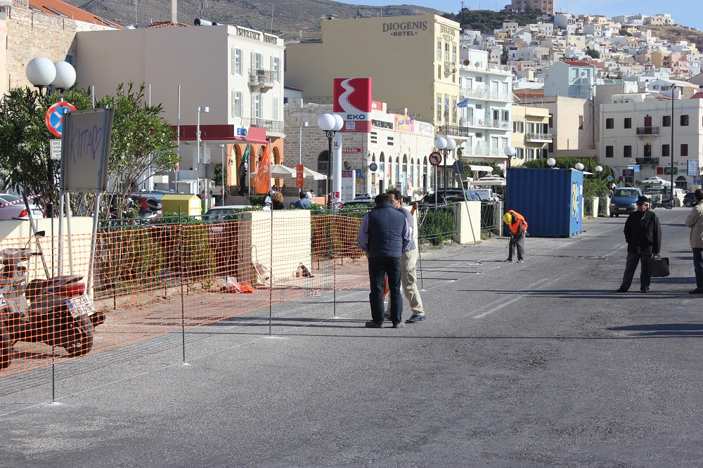 Οι πρώτες εργασίες για το έργο της ανάπλασης της παράκτιας ζώνης του λιμένα της Ερμούπολης ξεκίνησαν σήμερα λίγο μετά τις οκτώ το πρωί, οπότε και μετέβησαν στο παραλιακό μέτωπο στο ύψος της Πυροσβεστικής Υπηρεσίας, άνδρες του εργολάβου για τις απαραίτητες ενέργειες.
