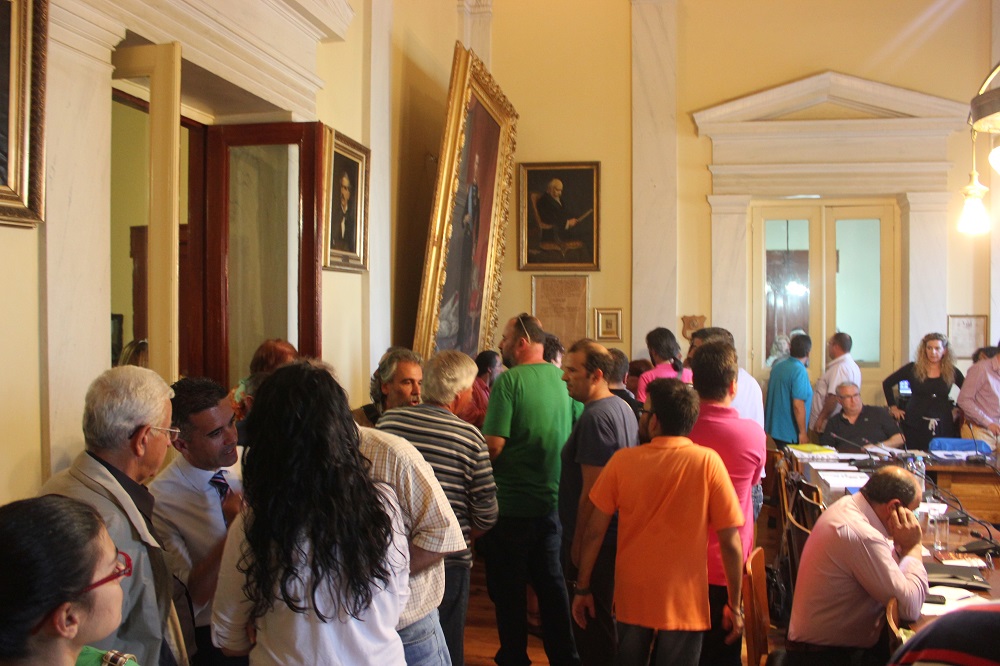 Τοποθετήσεις αιρετών που υποστήριξαν την ήπια μορφή αξιοποίησης της παραλίας προκάλεσαν την έντονη αντίδραση των παρευρισκομένων πολιτών, με την πρόεδρο του δημοτικού συμβουλίου, Μαρία Καζαντζάκη να επιχειρεί να προασπίσει τη διαδικασία κι εν τέλει, να διακόπτει τη συνεδρίαση προκειμένου να πέσουν οι τόνοι της αντιπαράθεσης.