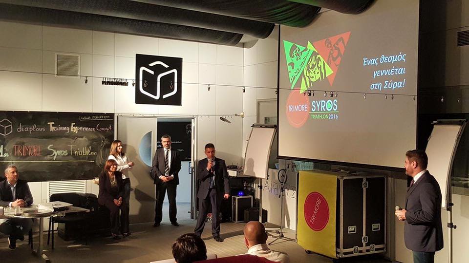 Το 1st TRIMORE Syros Triathlon 2016 απέκτησε ακόμη μεγαλύτερη υπόσταση, καθώς, την Πέμπτη 18 Φεβρουαρίου 2016, στον πολυχώρο της diaplous s.s.d.a. Ltd “diaplous Training Experience Concept – Ford T.C.”, πραγματοποιήθηκε η επίσημη παρουσίασή του.