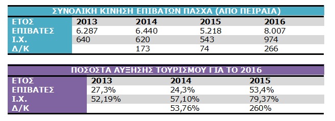 ΣΥΝΟΛΙΚΗ ΚΙΝΗΣΗ ΕΠΙΒΑΤΩΝ ΠΑΣΧΑ (ΑΠΟ ΠΕΙΡΑΙΑ) βλ. πίνακα
