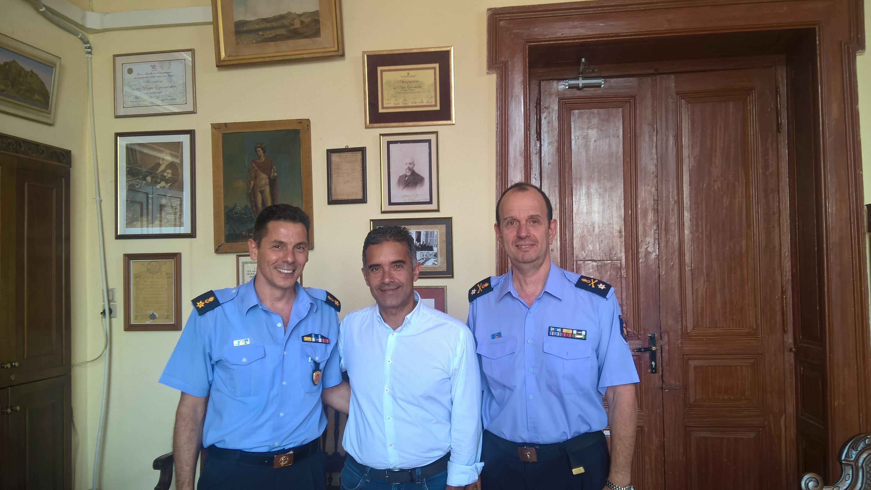Εθιμοτυπική επίσκεψη στον Δήμαρχο Σύρου -Ερμούπολης Γεώργιο Μαραγκό πραγματοποίησε ο νέος Διοικητής της Πυροσβεστικής Υπηρεσίας Ερμούπολης Επιπυραγός κ. Μαυραγάνης Παναγιώτης. Στη συνάντηση που πραγματοποιήθηκε στο γραφείο του Δημάρχου, σε εγκάρδιο κλίμα ο Γεώργιος Μαραγκός ευχήθηκε στον νέο Διοικητή καλή επιτυχία στα νέα του καθήκοντα και του επισήμανε το δύσκολο έργο που επιτελεί το Πυροσβεστικό Σώμα ως επιχειρησιακός βραχίονας της Γ.Γ.Π.Π. Επίσης έγινε αναφορά για την αποφασιστικότητα και τον επαγγελματισμό που έδειξε όλο το προσωπικό της Πυροσβεστικής Υπηρεσίας Ερμούπολης για τις πρωτόγνωρες πυρκαγιές που προκλήθηκαν κατά την φετινή αντιπυρική περίοδο στο νησί της Σύρου, την προσπάθεια αυτή είμαστε όλοι υποχρεωμένοι να την στηρίζουμε και να την ενισχύουμε με κάθε πρόσφορο μέσο.