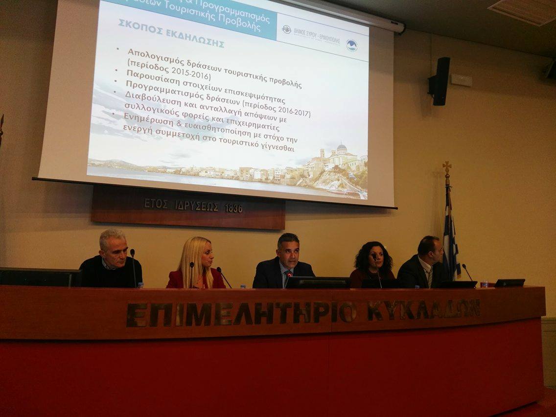 Εκδήλωση απολογισμού τουριστικών πεπραγμένων (2015 - 2016) και παρουσίασης τουριστικού πλάνου του 2017 από τον Δήμο Σύρου – Ερμούπολης