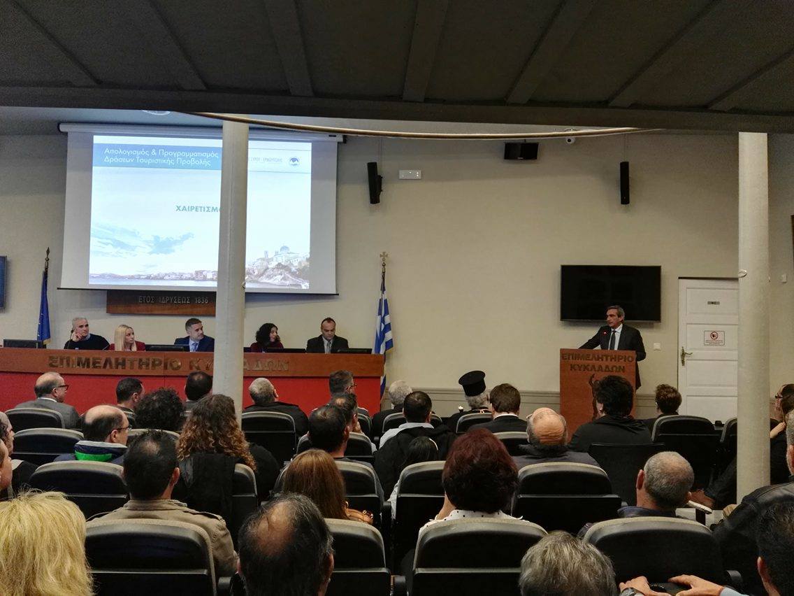 Την ατζέντα τουριστικών πεπραγμένων του Δήμου Σύρου – Ερμούπολης για τα έτη 2015 – 2016, καθώς επίσης και το πλάνο δράσεων τουριστικής ανάπτυξης του 2017 παρουσίασε η Δημοτική Αρχή του Δήμου Σύρου – Ερμούπολης στη χθεσινή εκδήλωση στην αιθ. “Βαλμά” του Επιμελητηρίου Κυκλάδων, παρουσία δημοτών κι εκπροσώπων Αρχών, Φορέων, Συλλόγων, Σωματείων του νησιού, των Κυκλάδων και του Νοτίου Αιγαίου, καθώς και των δύο Εκκλησιών, αλλά κι επιχειρηματιών του κλάδου.
