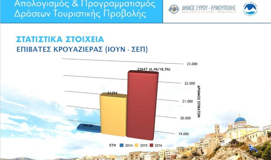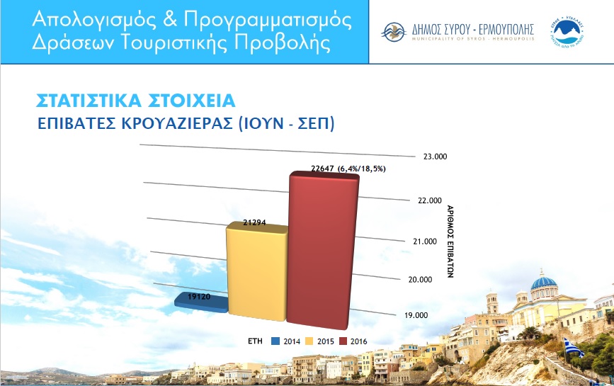 Η επιβεβλημένη ανάγκη ανάπτυξης της κρουαζιέρας στη Σύρο, ως ένα πεδίο από το οποίο μπορεί να προκύψει οικονομικό όφελος κι επισκεψιμότητα για το νησί, αναδείχθηκε έντονα, στο πλαίσιο της παρουσίασης των πεπραγμένων του Δημοτικού Λιμενικού Ταμείου Σύρου κατά τα τελευταία έτη, από τον πρόεδρό του, Δημήτρη Κοσμά, κατά τη διάρκεια της εκδήλωσης του τουριστικού απολογισμού της πρωτεύουσας των Κυκλάδων.