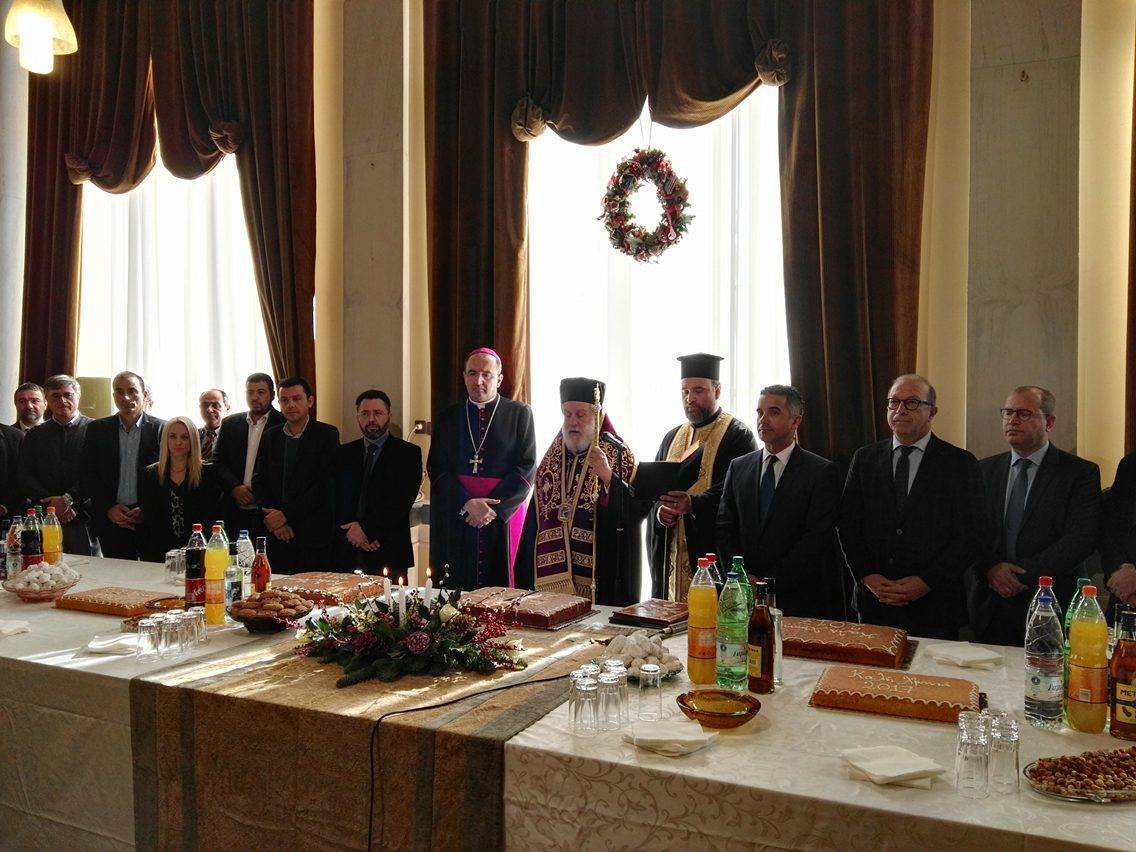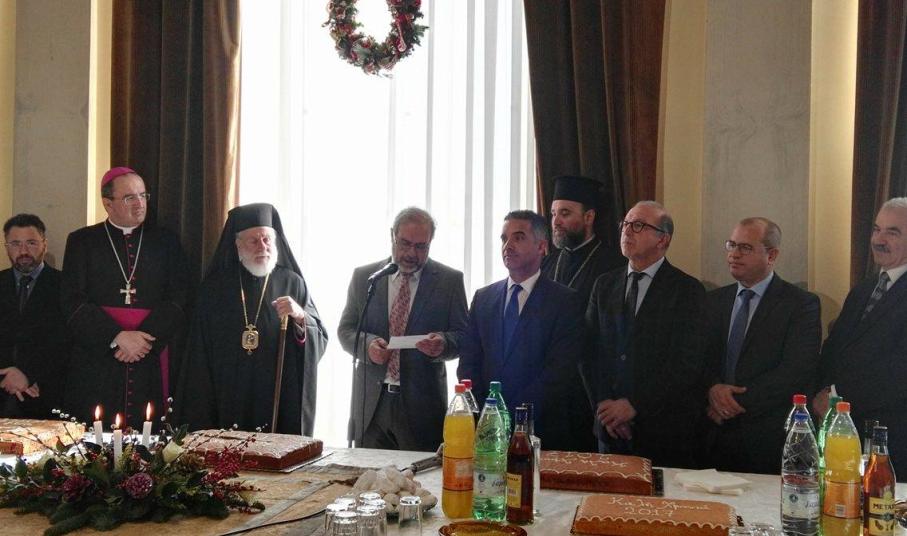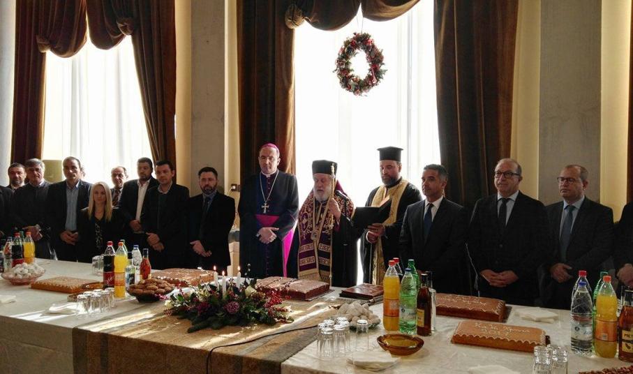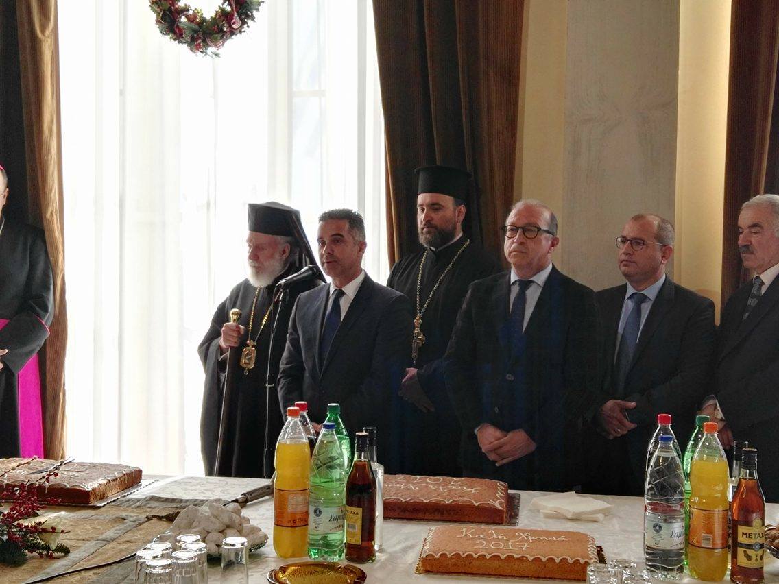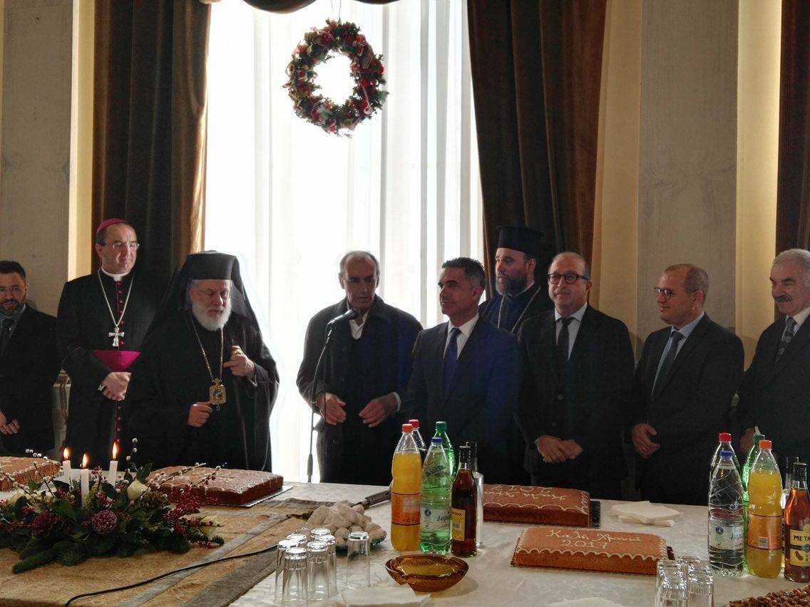 Ο κ. Μαραγκός πλαισιωμένος από τον Σεβασμιώτατο Μητροπολίτη Σύρου, κ. Δωρόθεο Β΄, τον Καθολικό Επίσκοπο Σύρου, Σεβ. π. Πέτρο Στεφάνου, τον Αντιπεριφερειάρχη Κυκλάδων, Γιώργο Λεονταρίτη, καθώς επίσης, τους αντιδημάρχους, τους εκπροσώπους των αντιπολιτευόμενων παρατάξεων, αλλά και αιρετούς του Δήμου Σύρου – Ερμούπολης, τον πρόεδρο του Επιμελητηρίου Κυκλάδων, Γιάννη Ρούσσο κι εκπροσώπων τοπικών Συλλόγων και των Σωμάτων Ασφαλείας υποδέχθηκε την άφιξη του νέου έτους στο Δημαρχιακό Μέγαρο.