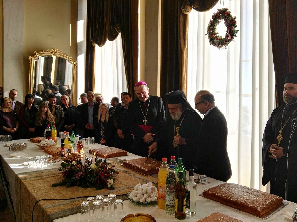 Διατυπώνοντας τον κυριότερο σκοπό της Δημοτικής Αρχής περί σταθερής προσπάθειας ανάπτυξης του νησιού σε όλα τα επίπεδα και βελτίωσης της καθημερινότητας των κατοίκων της, πραγματοποίησε την κοπή της αγιοβασιλιάτικης πίτας ο Δήμαρχος Σύρου – Ερμούπολης, Γιώργος Μαραγκός, κατόπιν της ευλογίας και των ευχών των δύο Επισκόπων του νησιού, της Ορθόδοξης και της Καθολικής Εκκλησίας.
