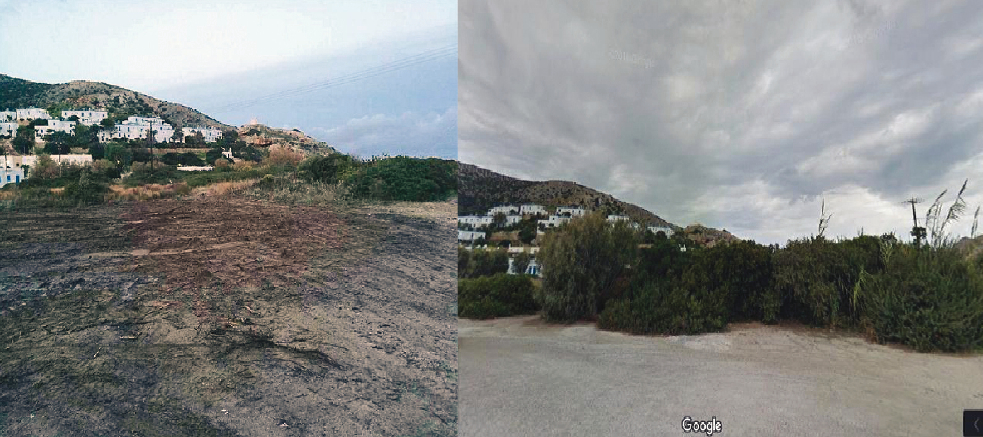 Μία νέα φωτογραφική αποτύπωση της περιοχής, σε αντιπαραβολή με την αποτύπωση των ηλεκτρονικών μηχανών απεικόνισης του διαδικτύου, επιβεβαιώνει το μέγεθος της έκτασης που εκριζώθηκε στην περιοχή του Γαλησσά, όπως και άλλες ανάλογες παρεμβάσεις παραπλεύρως του επίμαχου σημείου.