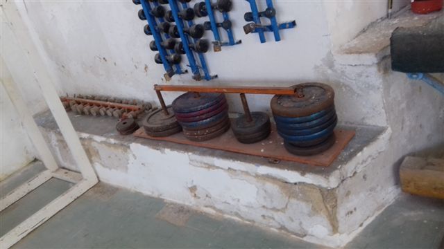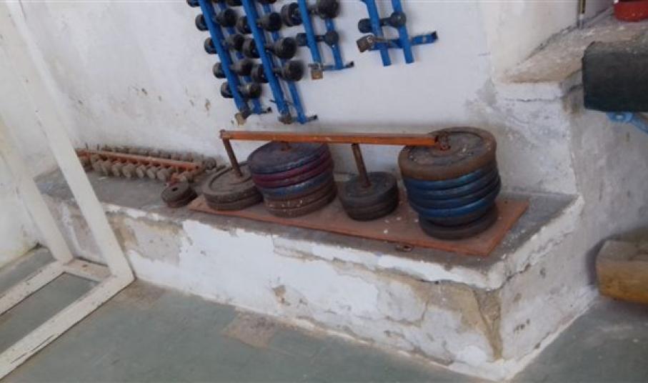 4. Στα παλιά αποδυτήρια-wc εμφανίζεται πτώση επιχρίσματος στην οροφή του, ενανθράκωση του οπλισμού και του σκυροδέματος που το περιβάλει. Διαπιστώθηκε συσσώρευση γραφικής ύλης, επίπλων και απορριμμάτων, με αποτέλεσμα τη δημιουργία εστίας μόλυνσης και τον κίνδυνο πρόκλησης πυρκαγιάς. Το κτίριο δεν αξιοποιείται, παρόλα αυτά είναι δυνατή η πρόσβαση στο εσωτερικό του.