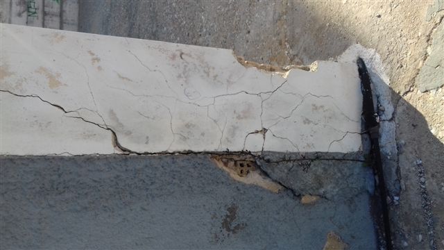 6. Δεξιά και αριστερά της εισόδου επί της οδού Καποδιστρίου διαμορφώνονται μικρά μονόχωρα κτίσματα στα οποία διαπιστώθηκε αποκόλληση μεγάλων τμημάτων του επιχρίσματος της οροφής και ενανθράκωση του οπλισμού καθώς και συσσώρευση απορριμμάτων, με αποτέλεσμα τη δημιουργία εστίας μόλυνσης. Η πλάκα εισόδου πάνω στην οποία διαμορφώνεται η εξέδρα των επισήμων παρουσιάζει διαμήκεις ρηγματώσεις και σοβαρή οξείδωση του οπλισμού.