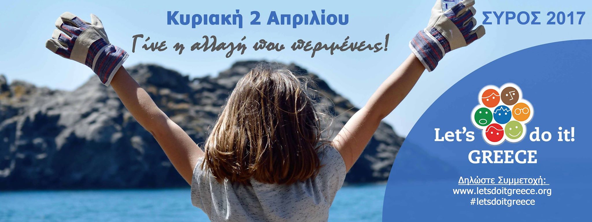 Σε ρυθμούς “Let’s do it Greece” κινείται η Σύρος, συμμετέχοντας και φέτος στο μεγάλο πανελλαδικό, εθελοντικό - περιβαλλοντικό πρόγραμμα, και φιλοδοξεί να κάνει δυναμική την παρουσία της, μιας και έχουν προγραμματιστεί πολλές και ποικίλες δράσεις σε διάφορες περιοχές του νησιού. Λόγω του μεγάλου αριθμού τους, οι δράσεις ξεκίνησαν από την Κυριακή 26 Μαρτίου και θα διαρκέσουν καθ’ όλη τη διάρκεια της τρέχουσας εβδομάδας, για να κορυφωθούν και να ολοκληρωθούν, την Κυριακή 2 Απριλίου που είναι και η βασικότερη ημέρα του προγράμματος σε πανελλαδικό επίπεδο.