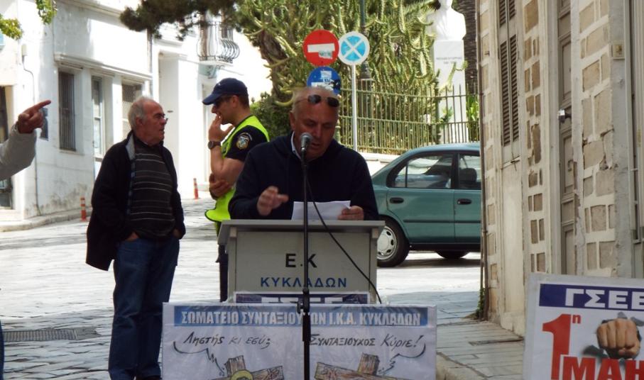 Παρόντες ήταν επίσης εκπρόσωποι της Τοπικής Αυτοδιοίκησης πρώτου και δεύτερου βαθμού, ενώ εκτός του Προέδρου του Εργατικού Κέντρου, μίλησαν, μεταξύ άλλων, επίσης ο πρόεδρος του Σωματείου Συνταξιούχων ΙΚΑ Κυκλάδων, ο πρόεδρος της Ένωσης Συνταξιούχων Ναυτικών Σύρου, ο πρόεδρος του Σωματείου Συνταξιούχων ΟΑΕΕ-ΤΕΒΕ-ΤΑΕ-ΤΣΑ Κυκλάδων, ο πρόεδρος του Σωματείου Εργαζομένων Οικοδόμων και Συναφών Επαγγελμάτων και εκπρόσωπος των Σύλλογος Δικαστικών Υπαλλήλων και Επιμελητών Κυκλάδων.