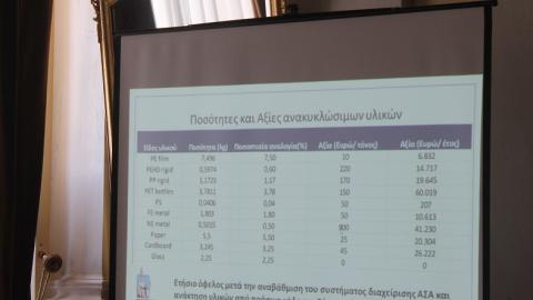 Ειδικότερα, κατά την παρουσίαση έγιναν γνωστά τα αποτελέσματα της ανάκτησης, τα οποία και προήλθαν βάσει συγκεκριμένης μεθοδολογίας για συγκεκριμένη ποσότητα απορριμμάτων, που ακολούθησε το ειδικό κλιμάκιο που εργάσθηκε για την μορφολογική μελέτη Αστικών Στερεών Αποβλήτων.