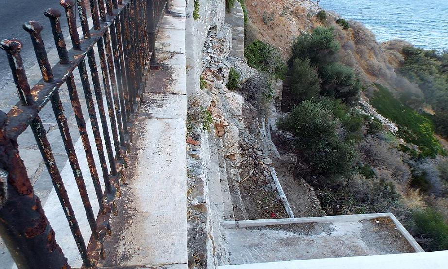 Στο συγκεκριμένο σημείο, το οποίο κρίθηκε από την Τεχνική Υπηρεσία του Δήμου Σύρου-Ερμούπολης ως ιδιαιτέρως επισφαλές, λόγω των εκτεταμένων διαβρώσεων που επί σειρά ετών παρατηρούνται στην περιοχή, ξεκίνησαν από εχθές οι πρώτες εργασίες.