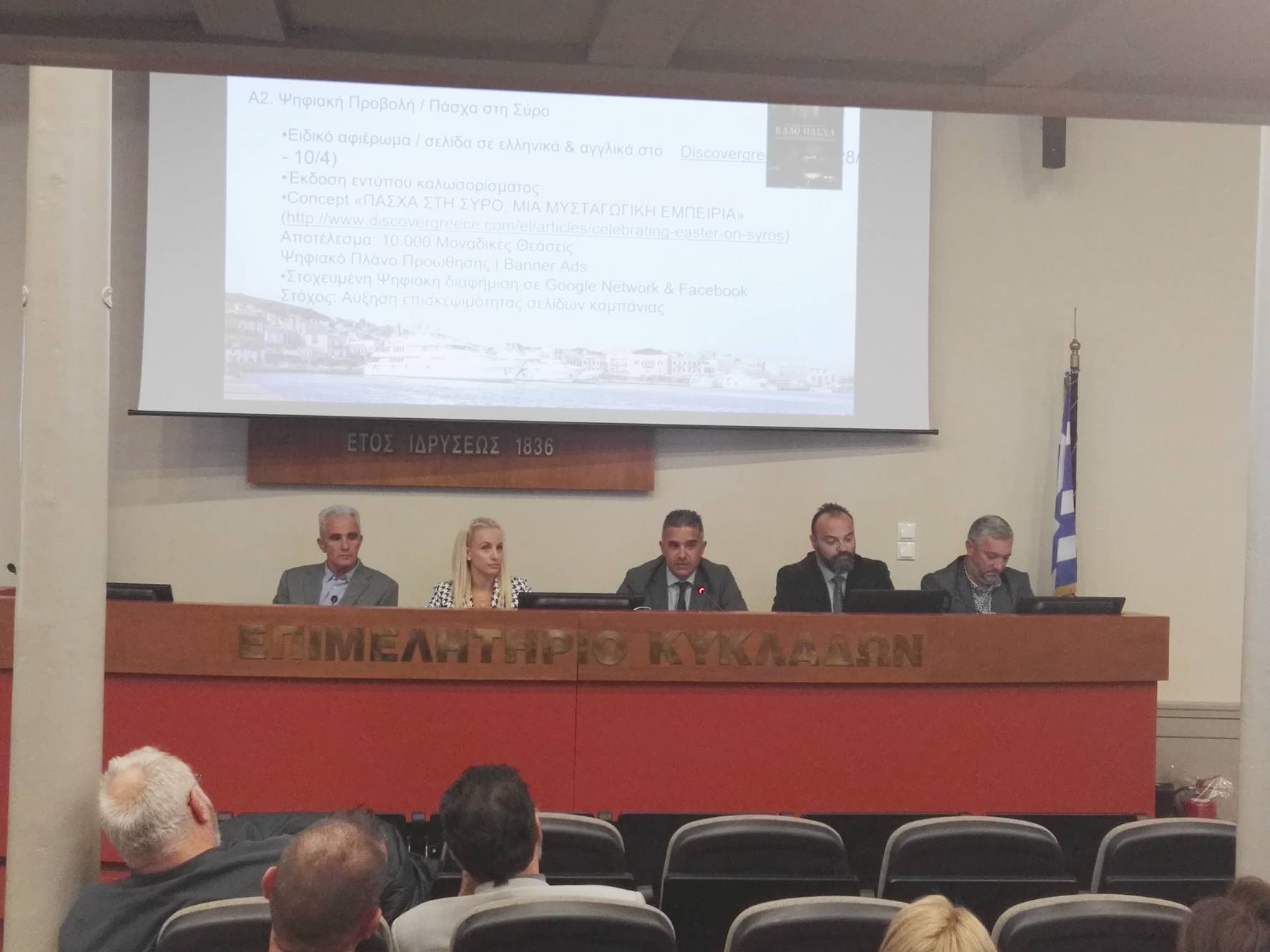 Παρουσία αιρετών μελών του Δήμου Σύρου – Ερμούπολης, μελών της Τουριστική Επιτροπής, αλλά κι εκπροσώπων επαγγελματιών, επιχειρηματιών του τουρισμού και προσώπων από τον χώρο της εστίασης και της εμπορικής τάξης της Σύρου, ο δήμαρχος Σύρου – Ερμούπολης, Γιώργος Μαραγκός, ο πρόεδρος της Τουριστικής Επιτροπής, Δομένικος Σαγκινέτος, η αντιδήμαρχος Πολιτισμού, Θωμαή Μενδρινού, ο πρόεδρος του Λιμενικού Ταμείου Σύρου, Δημήτρης Κοσμάς και ο εντεταλμένος δημοτικός σύμβουλος Αθλητισμού, Γουλιέλμος Πρίντεζης προχώρησαν στη διατύπωση των βασικών κατευθύνσεων που ακολουθεί η Σύρος για την τουριστική ανάπτυξή της.