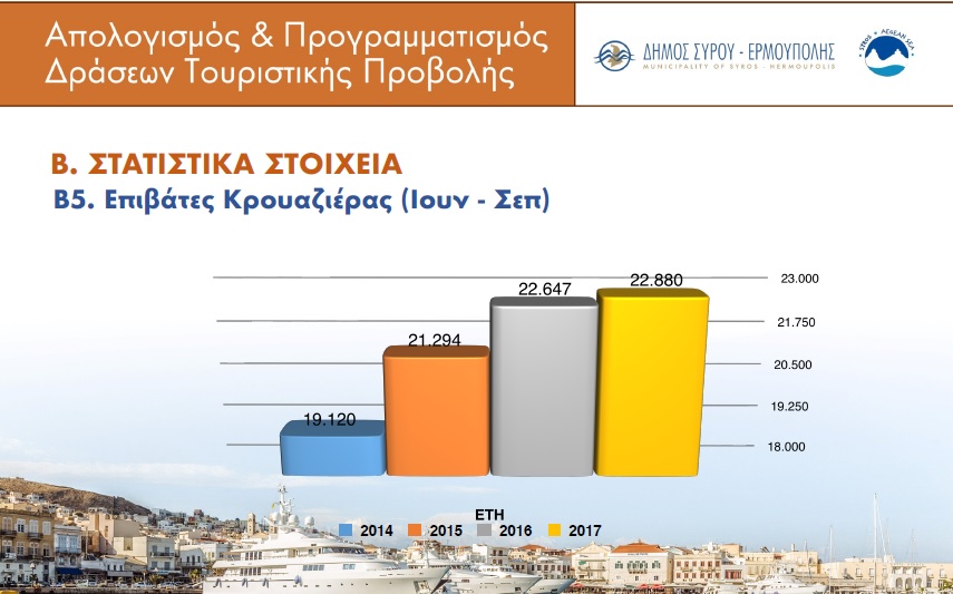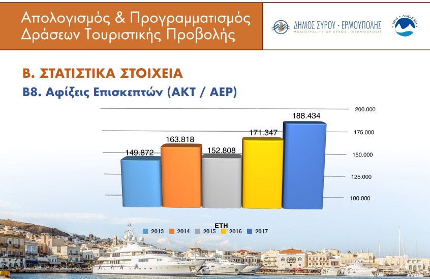 Τη συνεργασία και τη γόνιμη επικοινωνία με το σύνολο των επαγγελματιών του τουρισμού και των πολιτών της Σύρου υπογράμμισε η Δημοτική Αρχή ως την κύρια κι απαραίτητη προϋπόθεση τουριστικής ανάπτυξης της πρωτεύουσας των Κυκλάδων, στο πλαίσιο της χθεσινής επίσημης εκδήλωσης απολογισμού – προγραμματισμού που πραγματοποίησε στο Επιμελητήριο Κυκλάδων, για την παρουσίαση του τουριστικού βηματισμού της, για τα έτη 2017 – 2018.