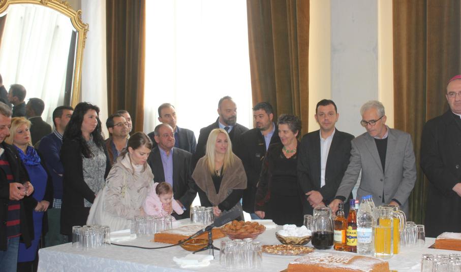 Ως είθισται κάθε χρόνο, οι δύο βαθμοί της Αυτοδιοίκησης καλωσορίζουν το νέο έτος με την ευλογία της αγιοβασιλιάτικης πίτας από τον Σεβασμιώτατο Μητροπολίτη Σύρου, κ. Δωρόθεο Β΄ και τον Καθολικό Επίσκοπο Σύρου Σεβ. π. Πέτρο Στεφάνου, ανταλλάσσοντας ευχές και μηνύματα για την πορεία του νησιώτικου χώρου σε μία εποχή ιδιαιτέρως σκληρή, τόσο από άποψη οικονομική, όσο και σε επίπεδο γεωπολιτικών εξελίξεων.