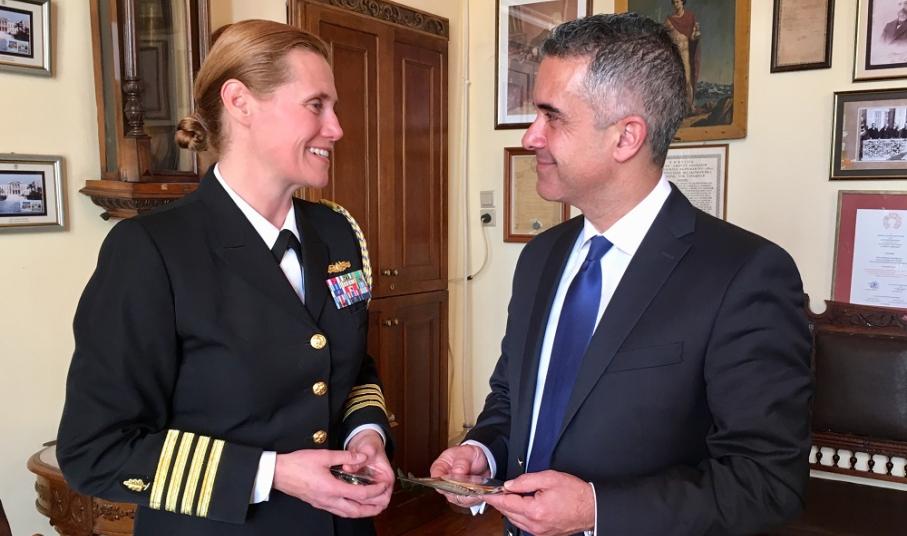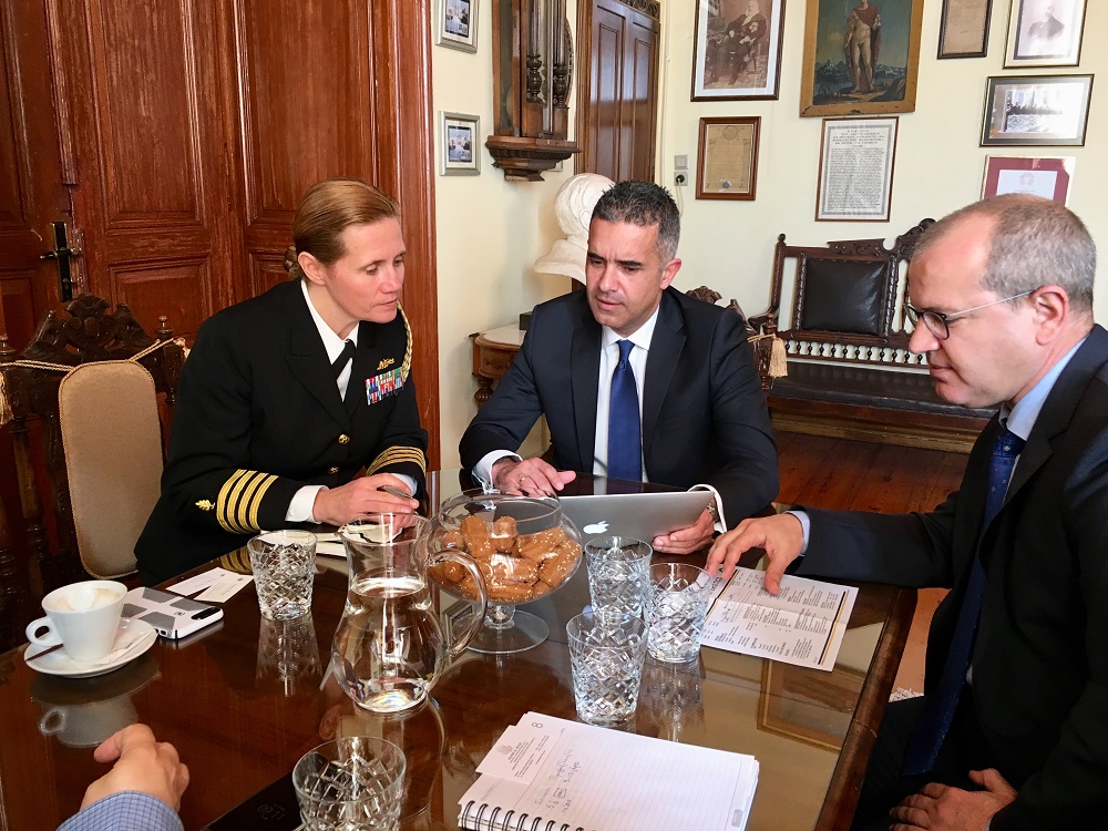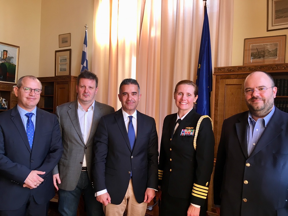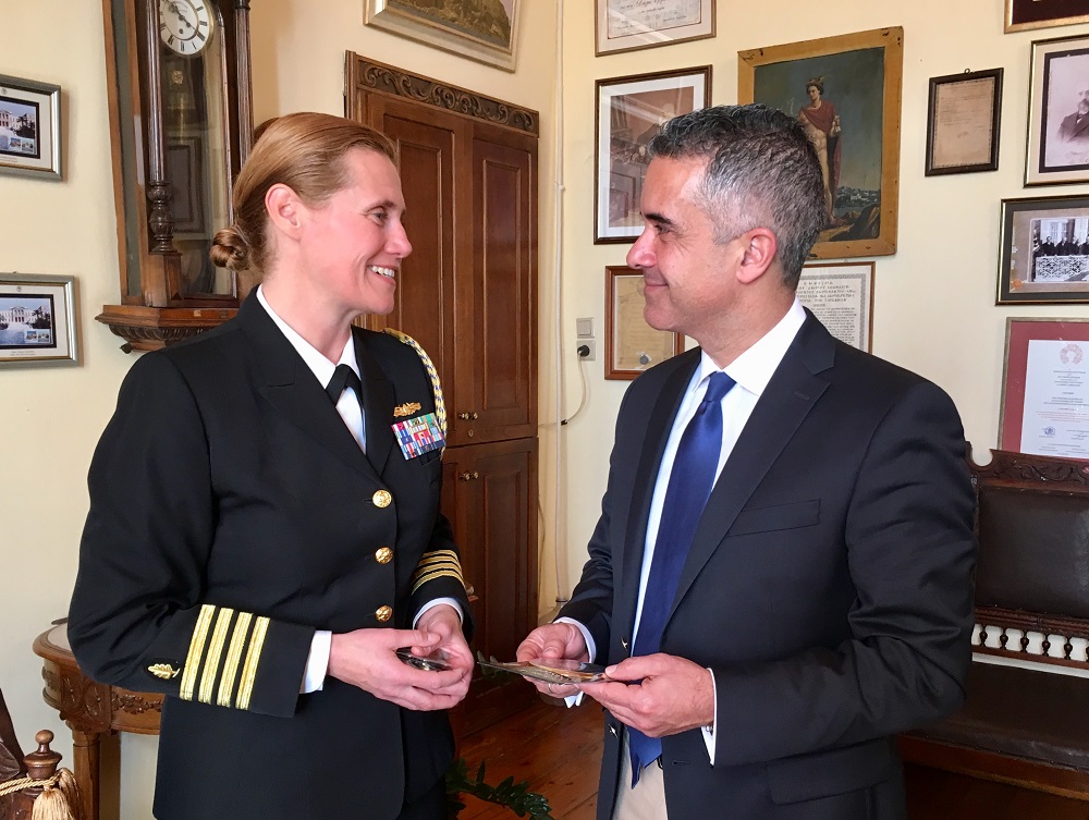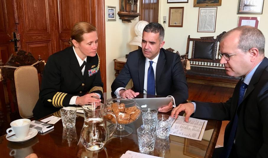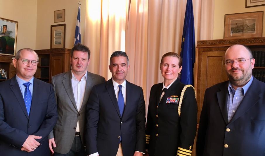 Σύσκεψη με τη Ναυτική Ακόλουθο της Πρεσβείας των ΗΠΑ στην Ελλάδα, Πλοίαρχο Rose E. Rice, πραγματοποιήθηκε σήμερα, 8 Μαρτίου 2018, στο Δημαρχιακό Μέγαρο, παρουσία του Δημάρχου Σύρου – Ερμούπολης κ. Γιώργου Μαραγκού, του Προέδρου του Δημοτικού Συμβουλίου κ. Γιώργου Δούναβη, του Αντιδημάρχου Οικονομικών κ. Αλέξανδρου Αθανασίου και του Γενικού Γραμματέα του Δήμου Σύρου – Ερμούπολης κ. Αλέξη Τσιάντη.