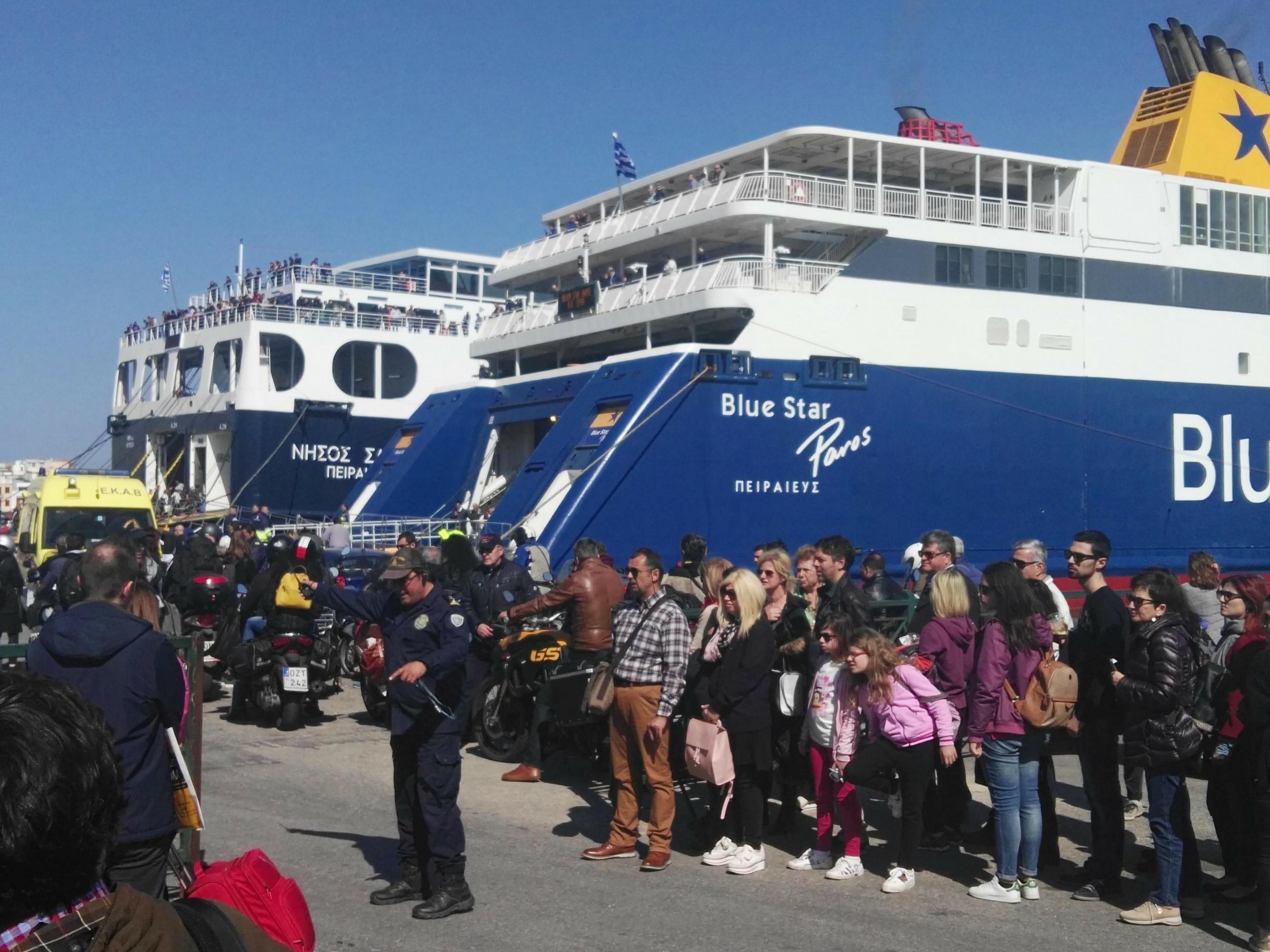 Ιδιαίτερο ενδιαφέρον παρουσιάζουν ξεχωριστά και τα στοιχεία των αφίξεων με τα πλοία της Blue Star Ferries το βράδυ του Μ. Σαββάτου και της Κυριακής των Βαΐων, οπότε και αντιστοίχως μεταφέρθηκαν από τον Πειραιά προς τη Σύρο συνολικά 1.188 επιβάτες.