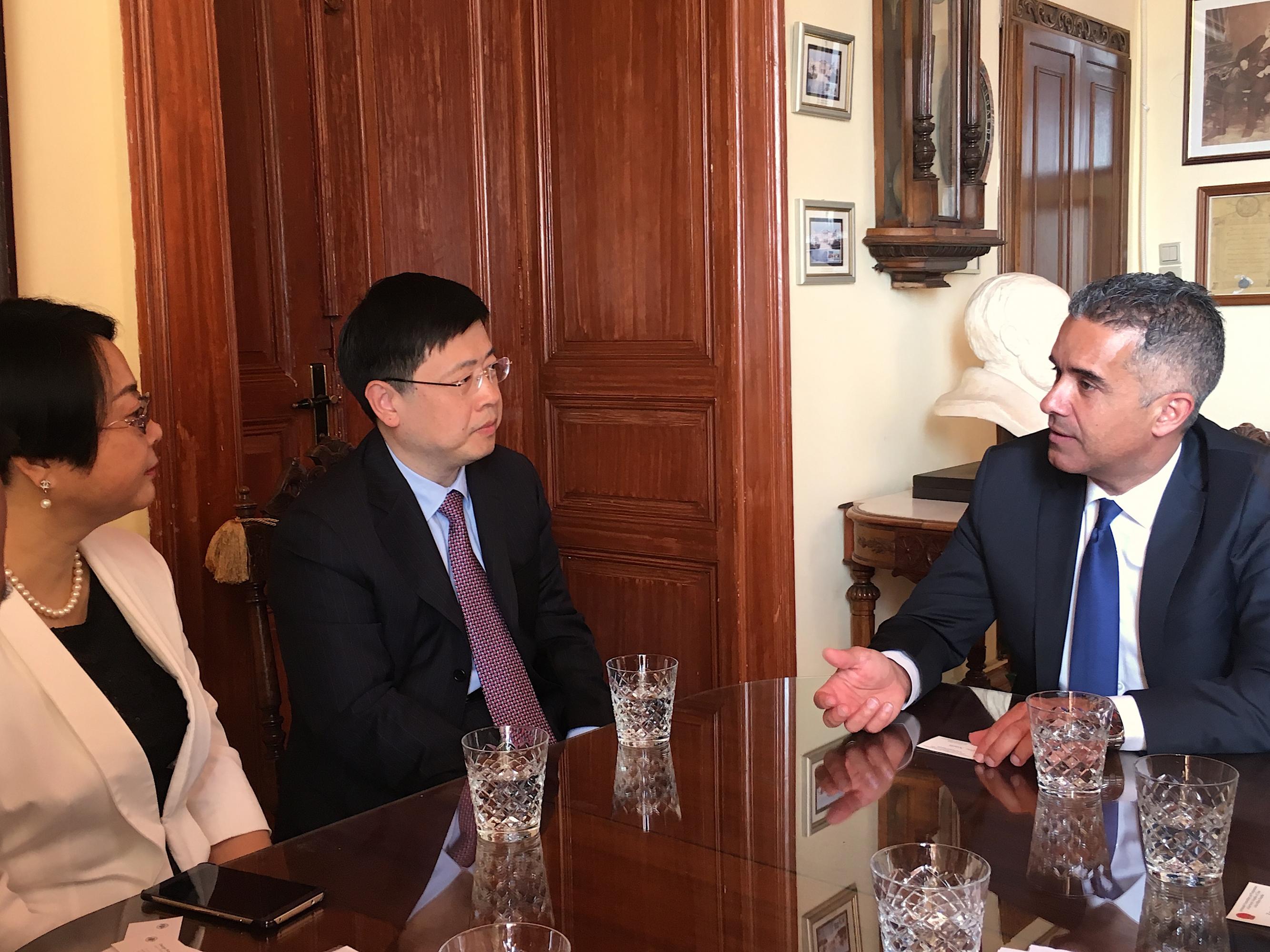 Ο κ. Πρέσβης, επίσης, αναφέρθηκε στη στρατηγική σημασία που έχει για την Κίνα η εγκατάσταση της COSCO στο λιμάνι του Πειραιά ως κόμβος για την προώθηση των προϊόντων της στην ευρωπαϊκή αγορά και τόνισε τη στρατηγική σημασία του λιμανιού της Σύρου από εμπορικής άποψης, προσδοκώντας στη δημιουργία συνεργειών και αναπτυξιακών ωφελειών.