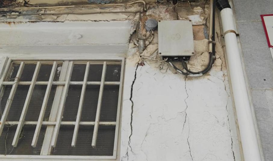 Η αποκόλληση τμημάτων των επιφανειών του, η πτώση σοβάδων, οι ρωγμές στους τοίχους του, καθώς όμως και το στέγαστρο που σχεδόν αιωρείται πάνω από την είσοδό του και το πεζοδρόμιο, αποτέλεσαν την αφορμή παρέμβασης εκ μέρους της Κίνησης Πολιτών Σύρου, κατά την προχθεσινή συνεδρίαση του δημοτικού συμβουλίου, προκειμένου να επιληφθεί του θέματος η Τεχνική Υπηρεσία και η Πολεοδομία.