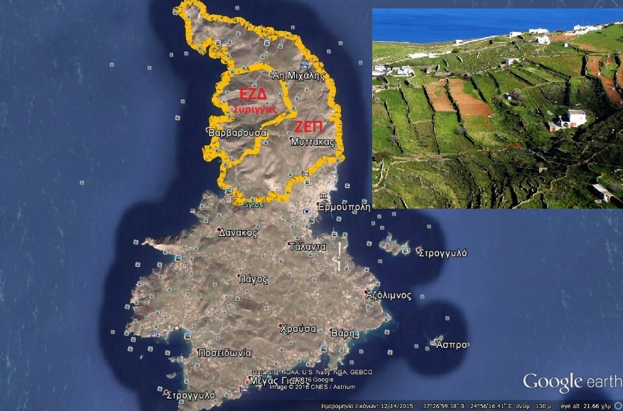 Προς αναλυτικότερη ενημέρωση της τοπικής κοινωνίας, δημοσιεύεται ακολούθως το όραμα της ΚοινΣΕπ “Απάνω Μεριά” για το Γεωπάρκο στη Σύρο, όπως ακριβώς έχει περιγραφεί και παρουσιαστεί στη σχετική ιστοσελίδα: “Η Απάνω Μεριά της Σύρου αποτελεί ένα χαρακτηριστικό και καλοδιατηρημένο παράδειγμα της κυκλαδίτικης ιστορίας, της κυκλαδίτικης οικονομίας και πολιτισμού καθώς και του κυκλαδίτικου τοπίου και της αρχιτεκτονικής του: α. με ιστορία και αρχαιολογικούς χώρους που ξεκινάνε με την έναρξη του πρωτοκυκλαδικού πολιτισμού (Καστρί-Χαλανδριανή, Δελφινονήσι – 3000 π.χ.), β. με τον σπάνιο αρχαιολογικό χώρο των Γραμμάτων, που συνδέεται με τη ναυτική επικοινωνία των Κυκλαδιτών, που συνόδεψαν τον Κυκλαδικό πολιτισμό από την γέννησή του, γ. με σπάνιους γεωλογικούς σχηματισμούς που απεικονίζουν την γεωλογική ιστορία του Αιγαίου, δ. με έντονο θαλάσσιο πλούτο που χαρακτηρίζει την περιοχή, ως συνέχεια και σε ενότητα με το υπό θεσμοθέτηση θαλάσσιο πάρκο της Γυάρου, ε. με μία τοπική οικονομία που βασιζόταν πάντα στην αγροτική και κτηνοτροφική παραγωγή σε μικρές εκτάσεις, που διαμορφώνονταν στο έντονο ανάγλυφο με τους αναβαθμούς και τις ξερολιθιές. Αγροτική παραγωγή κυρίως άνυδρη, λόγω της σοβαρής έλλειψης νερού που χαρακτήριζε πάντα τα περισσότερα νησιά των Κυκλάδων, στ. με μικρούς συνεκτικούς οικισμούς με ισόγεια κατά κύριο λόγο κτίσματα, με θεμωνιές, αλώνια, πηγάδια και πάμπολλες χαρακτηριστικές αρχιτεκτονικές κατασκευές, ζ. με μια άγρια φυσική ομορφιά, που συνθέτουν οι απότομες πλαγιές, οι μυρωδιές από το θυμάρι και το φασκόμηλο, τα παλαιά μονοπάτια, οι ξερολιθιές και οι αναβαθμοί, οι άγριες ρεματιές μαζί με τις παρθένες παραλίες τις προστατευμένες από τους βοριάδες.