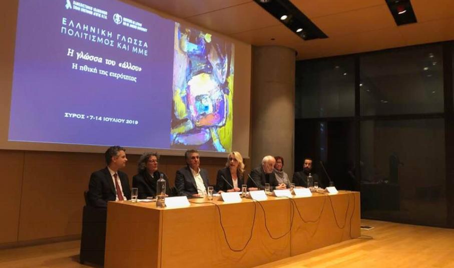 Σε λαμπρή τελετή, παρουσία του Προέδρου της Δημοκρατίας κ. Προκόπιου Παυλόπουλου, του Μητροπολίτη Σύρου κ. Δωρόθεου Β’, του Δημάρχου Σύρου – Ερμούπολης κ. Γιώργου Μαραγκού, της Αντιδημάρχου Πολιτισμού κας Θωμαής Μενδρινού και πολλών εκπροσώπων του ακαδημαϊκού, πολιτικού, καλλιτεχνικού, επιχειρηματικού και δημοσιογραφικού χώρου, πραγματοποιήθηκε, την Παρασκευή 18 Ιανουαρίου 2019, στο αμφιθέατρο του Μουσείου της Ακρόπολης, η ανακοίνωση του 5ου Διεθνούς Θερινού Πανεπιστημίου «Ελληνική γλώσσα, Πολιτισμός και Μέσα Ενημέρωσης», με κύριο θέμα της φετινής διοργάνωσης «Η γλώσσα του άλλου. Η ηθική της ετερότητας».