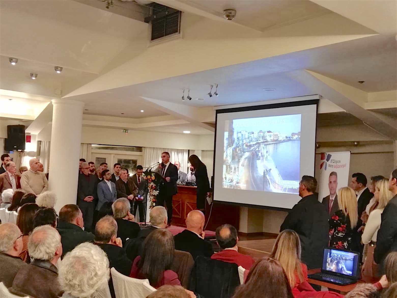 Στην κατάμεστη αίθουσα εκδηλώσεων του ξενοδοχείου στην Ερμούπολη, ο επικεφαλής του συνδυασμού “Η Σύρος που αξίζουμε” και νυν Δήμαρχος προχώρησε στη συνοπτική παρουσίαση των βασικών αξόνων του προγράμματός του, το οποίο – όπως τόνισε – θα αναπτυχθεί ακόμη περισσότερο το προσεχές διάστημα προς ενημέρωση της τοπικής κοινωνίας.