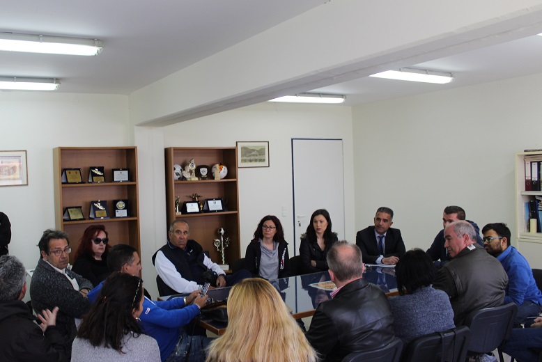 Συνάντηση με τον Πρόεδρο της Ε.Π.Σ.Κ. κ. Ειρηναίο Φρέρη, μέλη του Διοικητικού Συμβουλίου της Ε.Π.Σ.Κ., τον Αντιπρόεδρο της Επιτροπής Διαιτησίας Ε.Π.Σ.Κ. και εκπροσώπους των ποδοσφαιρικών σωματείων της Σύρου πραγματοποίησε ο Δήμαρχος κ. Γιώργος Μαραγκός, την Πέμπτη 04 Απριλίου 2019, παρουσία του Αντιδημάρχου κ. Δομένικου Σαγκινέτου και των υποψήφιων Συμβούλων κ.κ. Γεωργίας Ρούσσου, Ελπίδας Ρούσσου, Πέτρου Ραουζαίου και Γιώργου Φώσκολου.