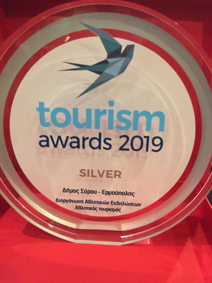 Για τη διοργάνωση σημαντικών και ποικίλων αθλητικών εκδηλώσεων διακρίθηκε ο Δήμος Σύρου – Ερμούπολης, στην τελετή απονομής των Tourism Awards 2019, τα οποία κάθε χρόνο απονέμονται, με στόχο να αναδείξουν και να επιβραβεύσουν τις κορυφαίες πρακτικές και τις πιο καινοτόμες πρωτοβουλίες επιχειρήσεων ή φορέων του τουρισμού.