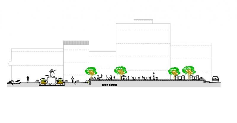 Οι βασικές παρεμβάσεις στην περιοχή μελέτης είναι: η καθαίρεση του υπερυψωμένου τμήματος σε σχήμα τραπεζίου στη νοτιοδυτική πλευρά της πλατείας, η κατάργηση των υφιστάμενων παρτεριών γύρω από το παραπάνω τμήμα, η τοποθέτηση του αγάλματος και της βάσης του σύμφωνα με το σχέδιο του γλύπτη, συνοδευόμενη από όλες τις απαραίτητες εργασίες εκσκαφών, επιχώσεων, σκυροδετήσεων και επιστρώσεων, η τοποθέτηση μαρμάρινων πλακών ιδίου μεγέθους, σχήματος και χρώματος με τις υφιστάμενες, γύρω από την περιοχή του αγάλματος, η αντικατάσταση του δαπέδου από λωρίδες φυσικής ξυλείας, με σανίδες συνθετικής ξυλείας (deck) στη βορειοανατολική πλευρά της πλατείας η αντικατάσταση όλων των φθαρμένων και σπασμένων μαρμαροπλακών, η επέκταση των γραμμών στο υπάρχον αποχετευτικό δίκτυο, για τη σωστή απορροή των ομβρίων υδάτων και η εγκατάσταση και τοποθέτηση φωτιστικών για τον φωτισμό και την αισθητική ανάδειξη του αγάλματος.