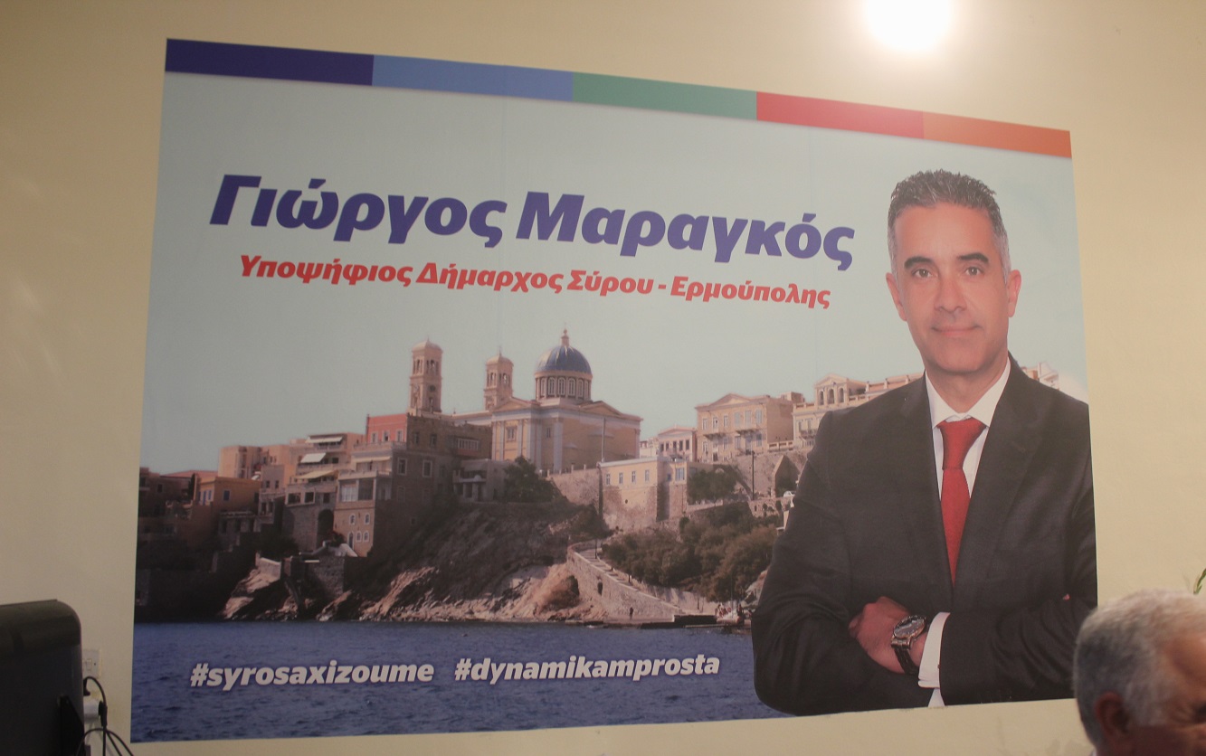 Αισιοδοξία για τη νίκη του συνδυασμού του στις δημοτικές εκλογές εξέφρασε ο Γιώργος Μαραγκός, απόψε το βράδυ, στο πλαίσιο των εγκαινίων του εκλογικού κέντρου της “Σύρου που αξίζουμε”, στον πεζόδρομο της Ερμούπολης.