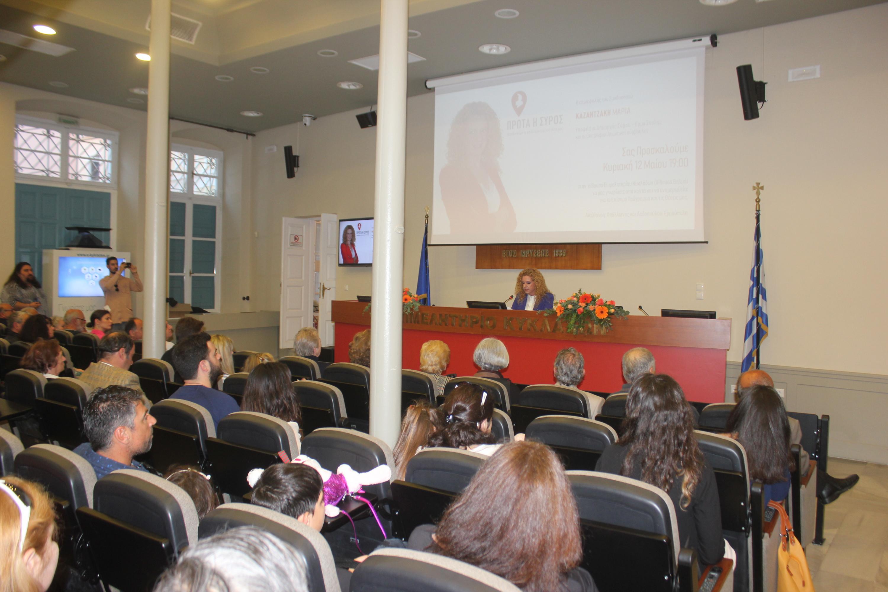 Πραγματοποιήθηκε η επίσημη παρουσίαση του προγράμματος του συνδυασμού “Πρώτα η Σύρος”, αργά το απόγευμα της Κυριακής, στο πλαίσιο εκδήλωσης που έλαβε χώρα στο Επιμελητήριο Κυκλάδων.
