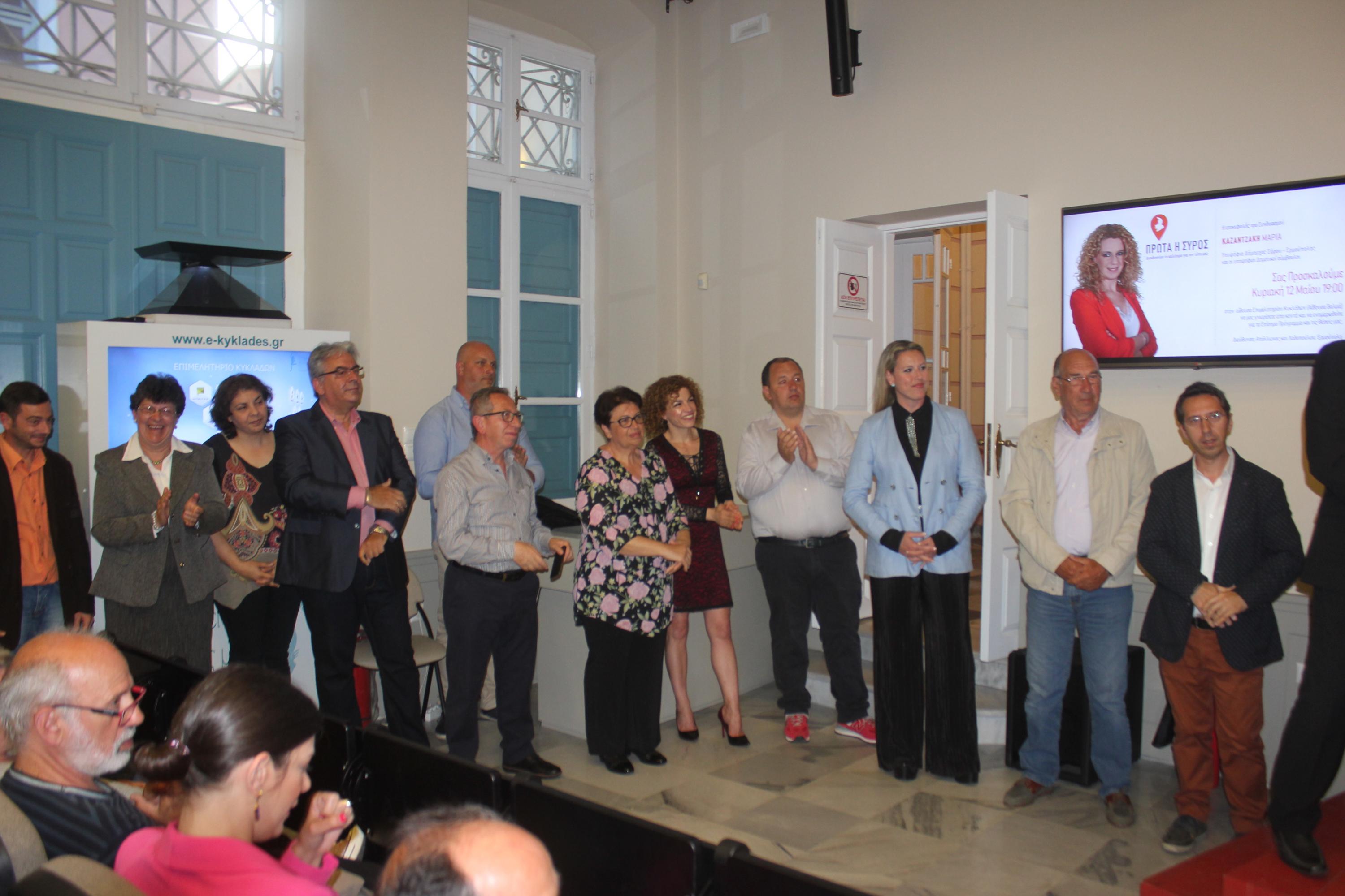 Αμέσως μετά την κεντρική ομιλία, κλήθηκαν και παρουσιάστηκαν οι υποψήφιοι σύμβουλοι που πλαισιώνουν το ψηφοδέλτιο του συνδυασμού “Πρώτα η Σύρος”.