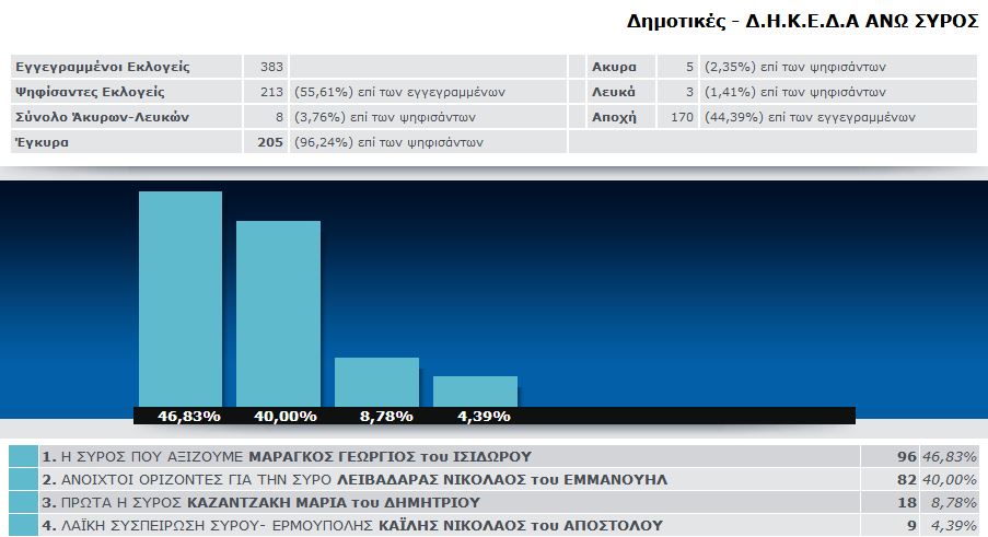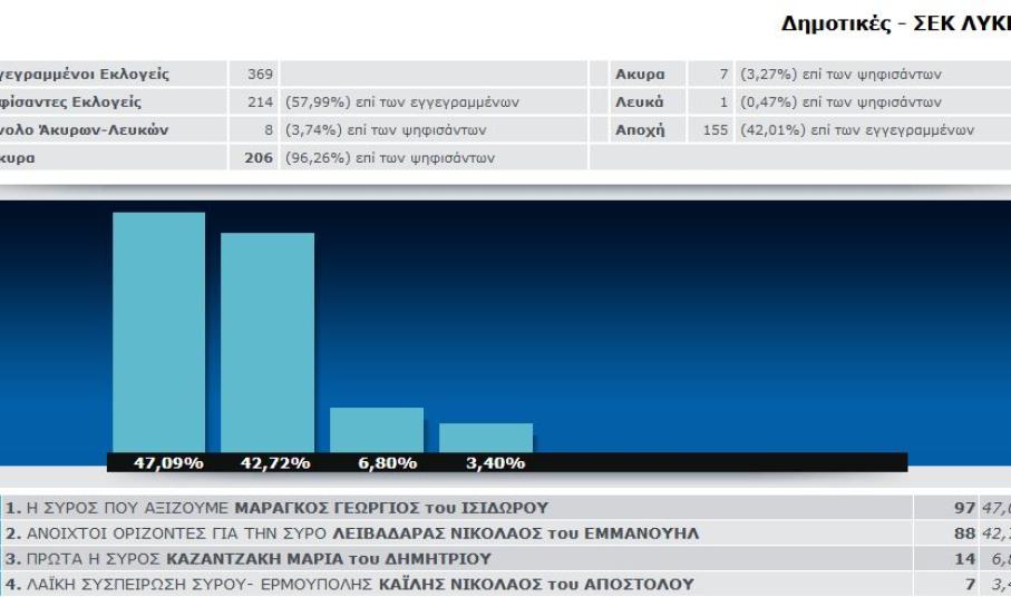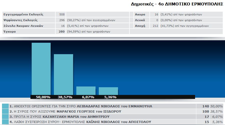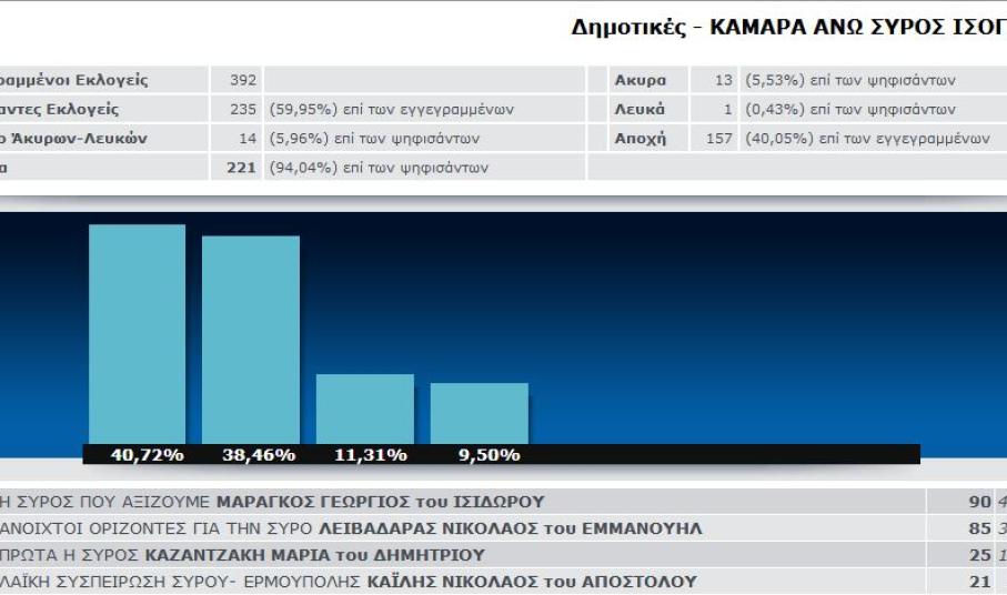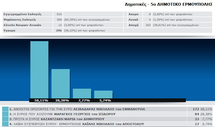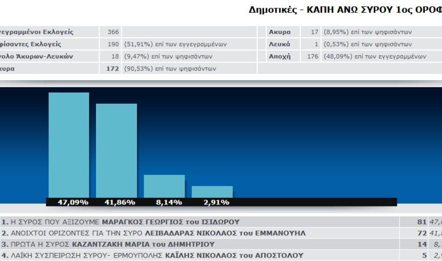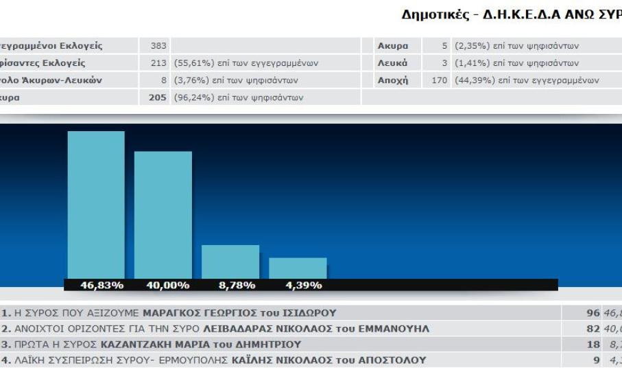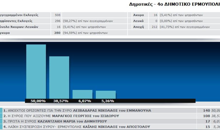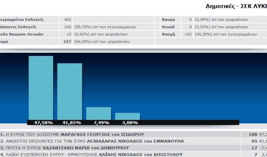 Τα αποτελέσματα για το Δήμου Σύρου Ερμούπολης